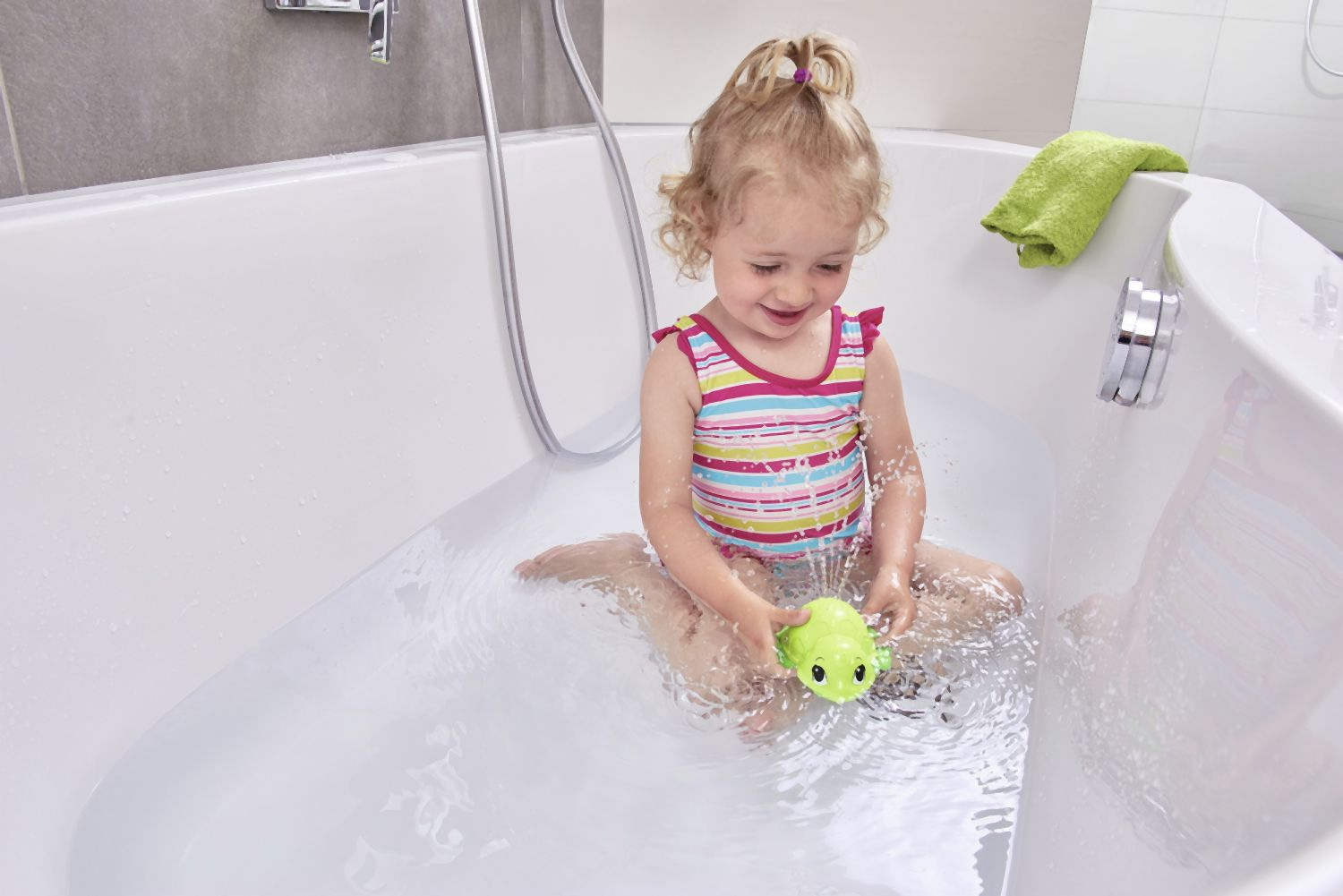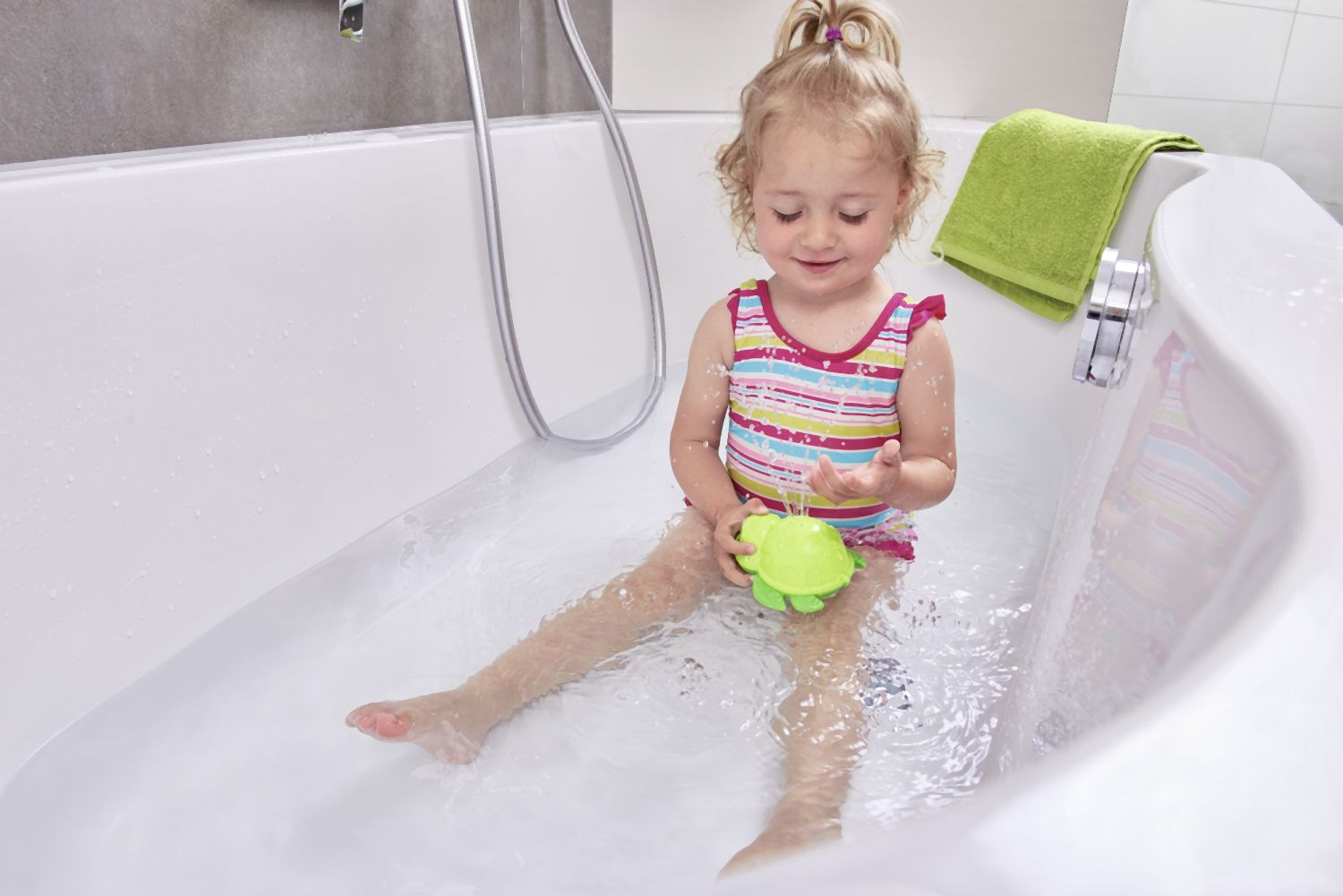 Chobotnička do vany pro zábavnější koupání. Při ponoření do vody se naplní vodou, přidržením otvorů na hlavičce a vyzvednutím chobotničky z vody, voda zůstane uvnitř. Následným uvolněním voda vyteče spodem jako "sprška". Velikost 10 cm.