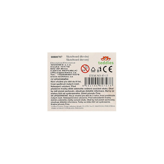 Skateboard drevěný 43cm 3 barvy ve fólii