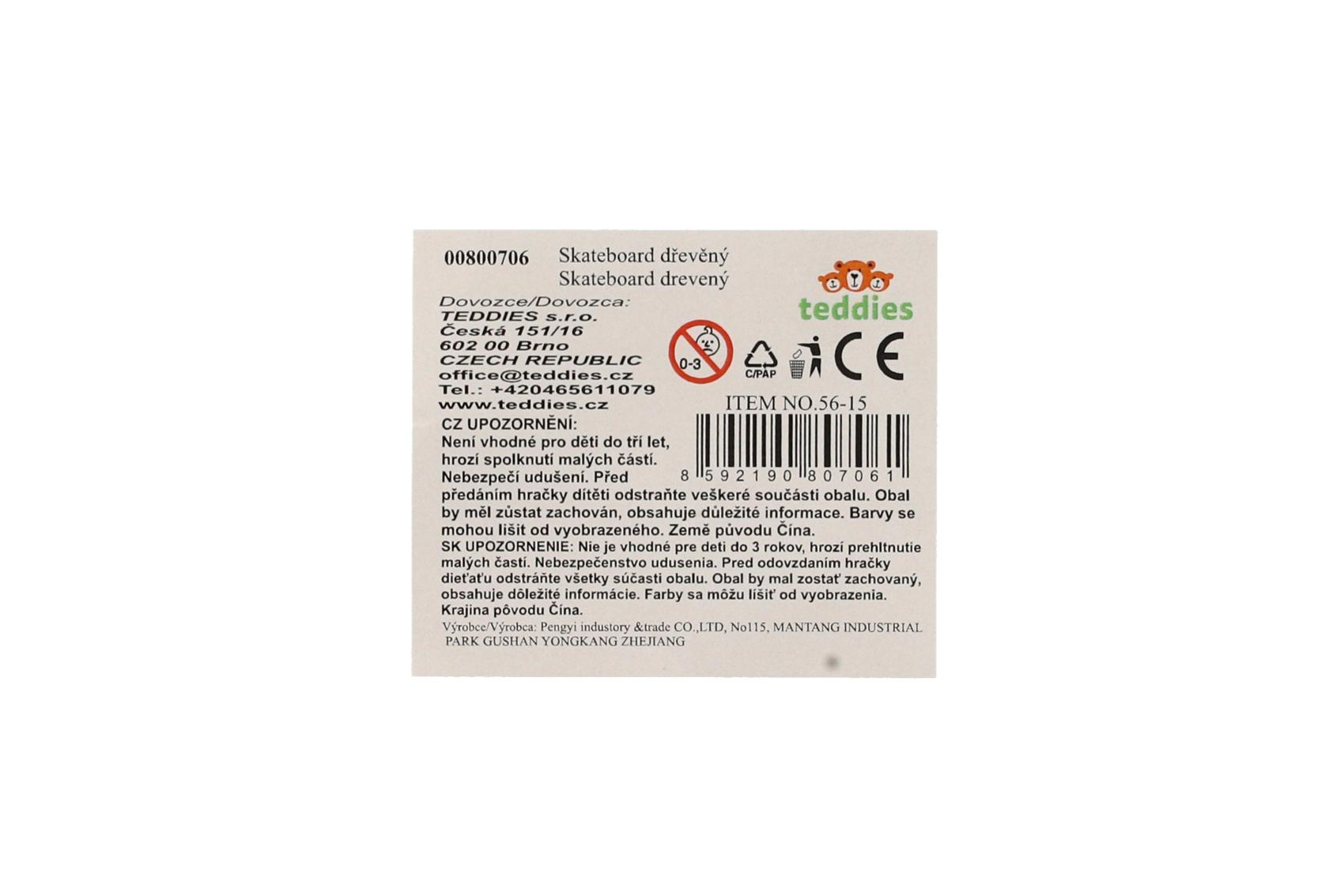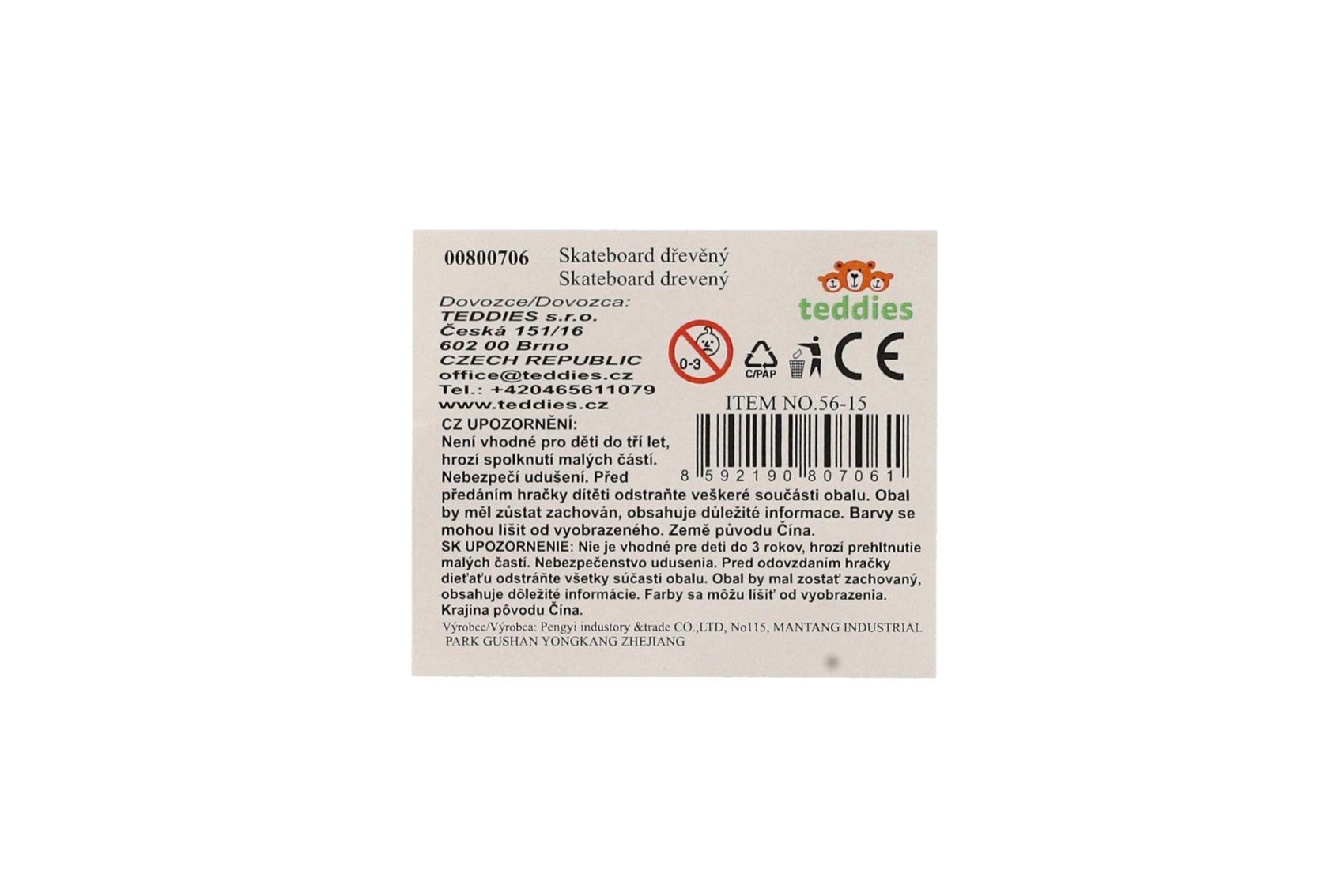 Skateboard drevěný 60cm 3 barvy ve fólii
