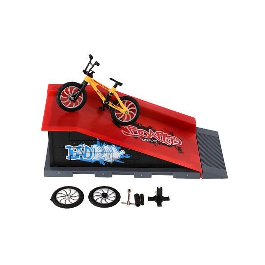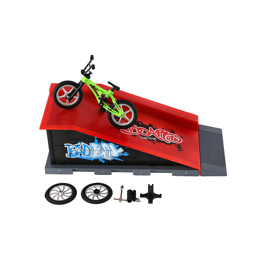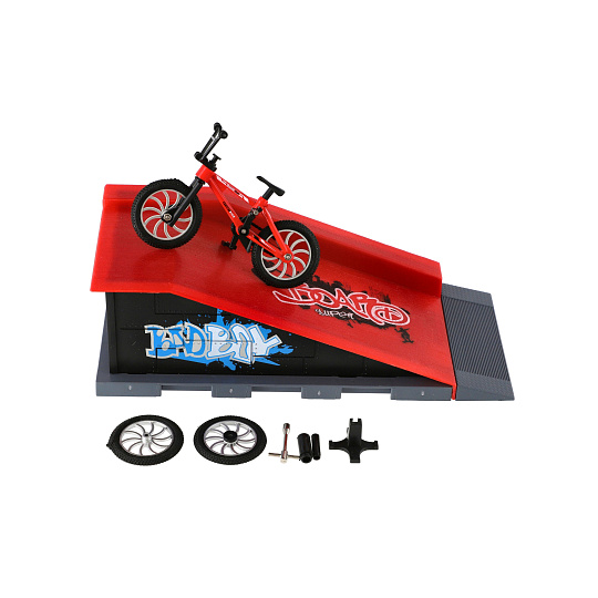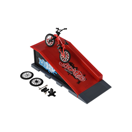 Užijte si zábavu s prstovým kolem a rampou! Set obsahuje kolo a rampu pro triky. Přizpůsobitelný díky šroubovacím komponentům. Perfektní dárek pro fanoušky fingerboardingu. Rozměry balení: 28 x 18 x 11 cm Vhodné pro děti od 3 let