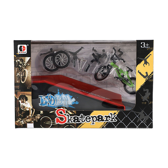 Skatepark - kolo prstové šroubovací s rampou plast 10cm s doplňky 3 barvy v krabici 28x18x11cm