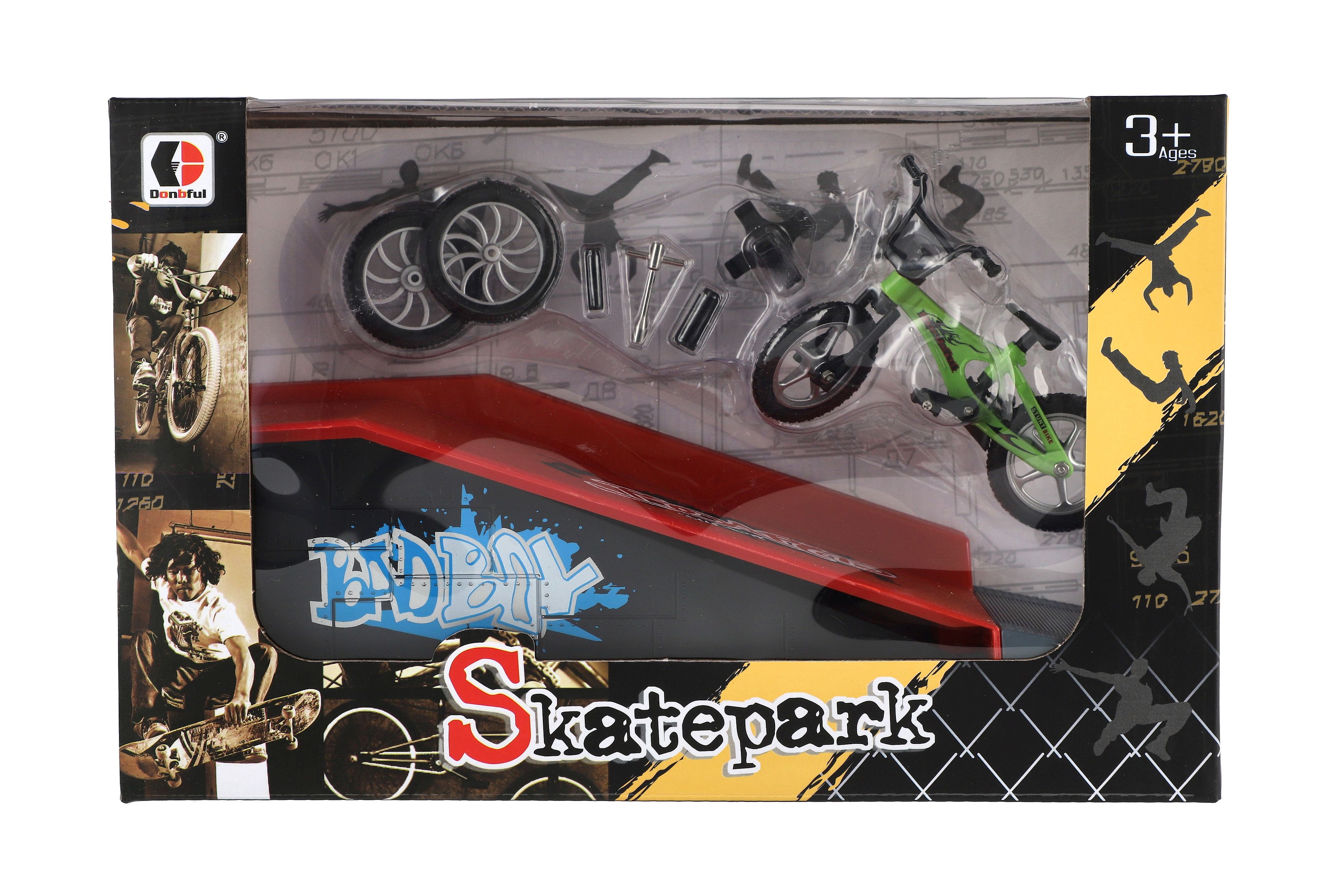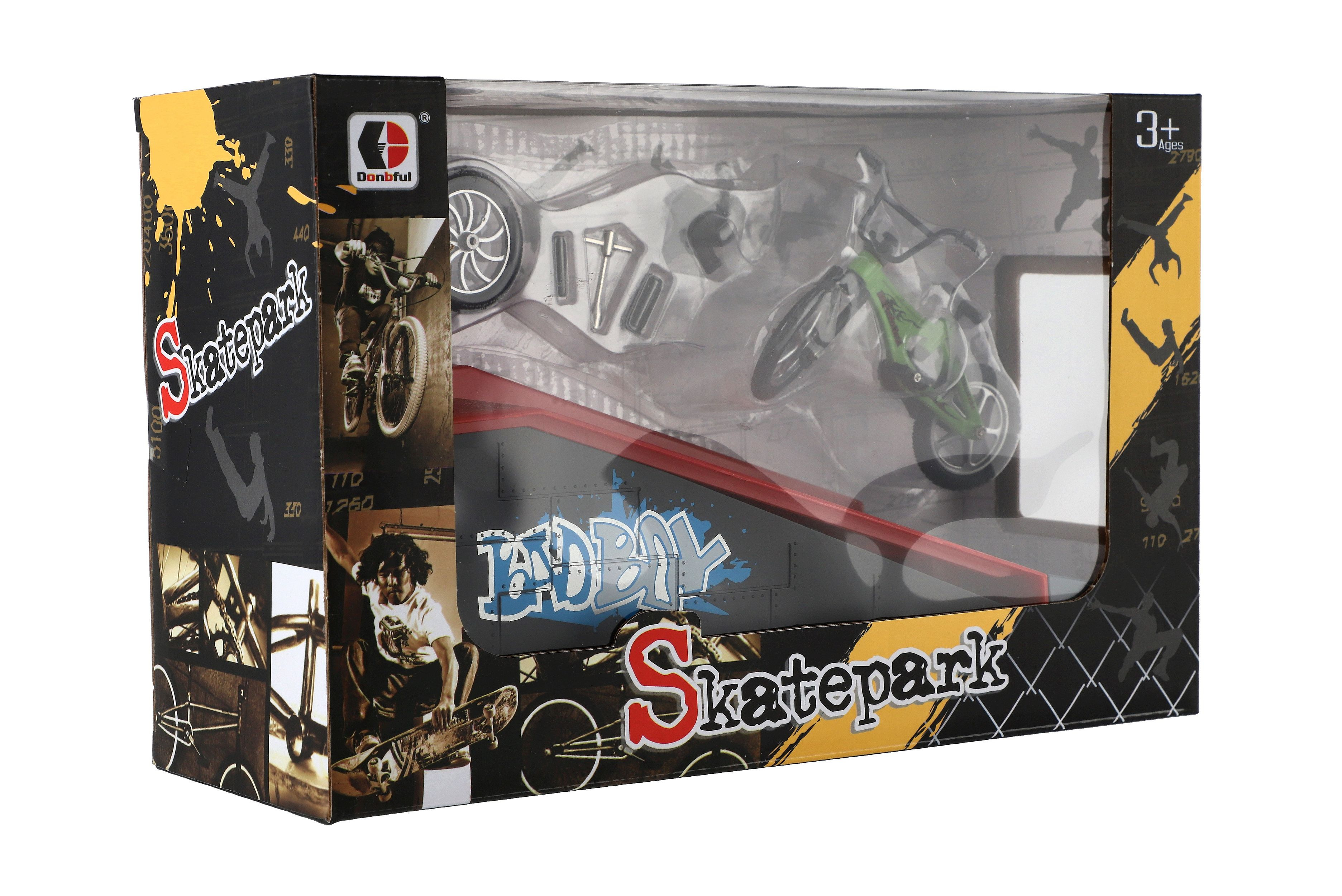 Skatepark - kolo prstové šroubovací s rampou plast 10cm s doplňky 3 barvy v krabici 28x18x11cm