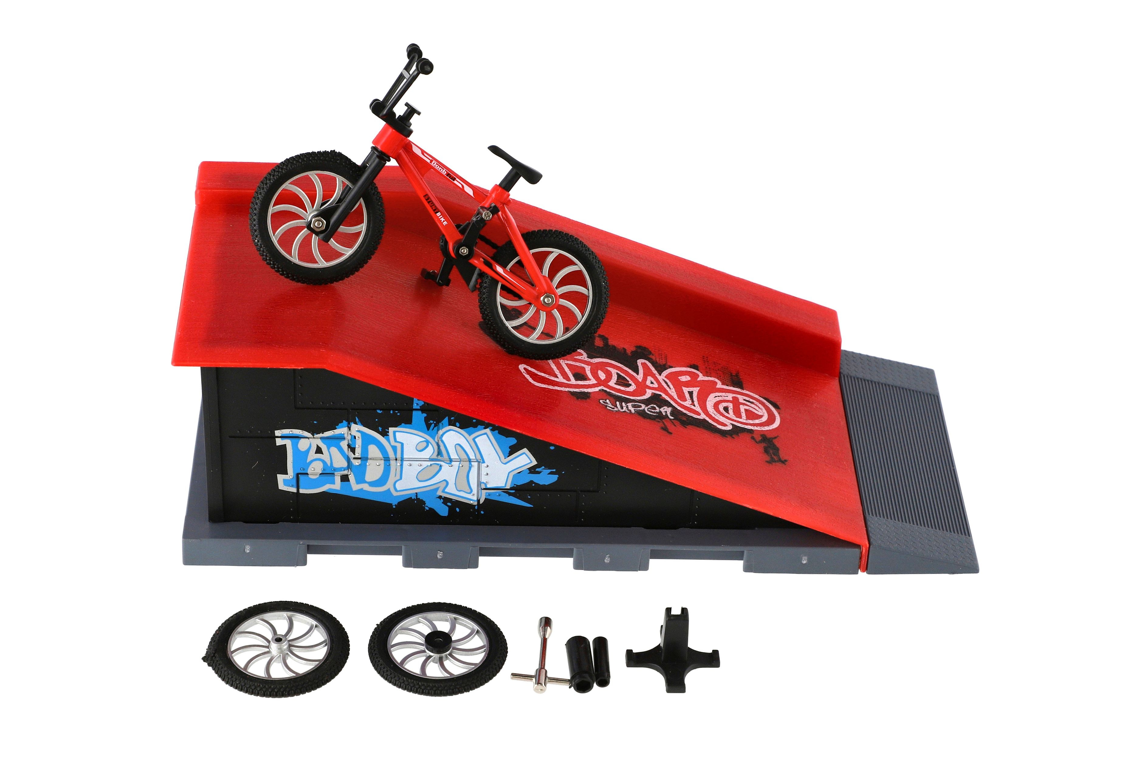 Užijte si zábavu s prstovým kolem a rampou! Set obsahuje kolo a rampu pro triky. Přizpůsobitelný díky šroubovacím komponentům. Perfektní dárek pro fanoušky fingerboardingu. Rozměry balení: 28 x 18 x 11 cm Vhodné pro děti od 3 let