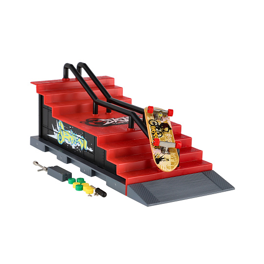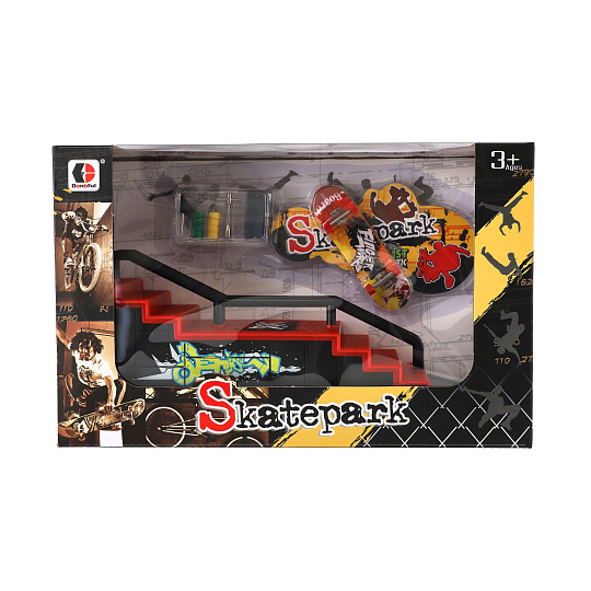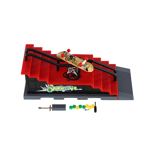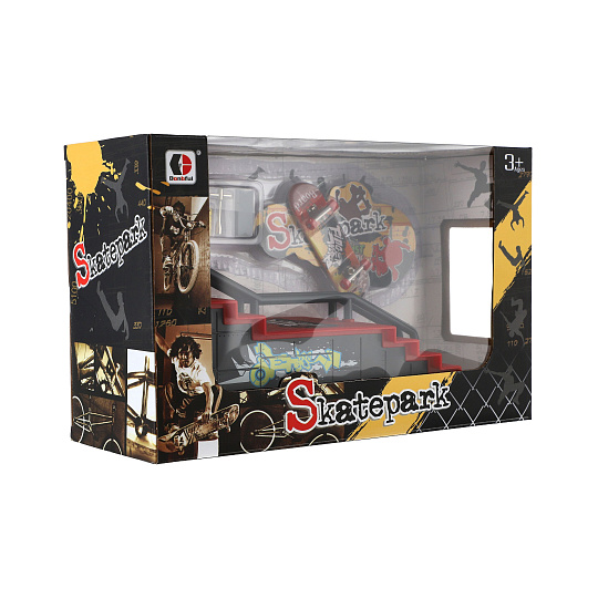 Teddies Skatepark - skateboard prstový šroubovací s rampou plast 8cm s doplňky mix druhů v krabici 28x18cm