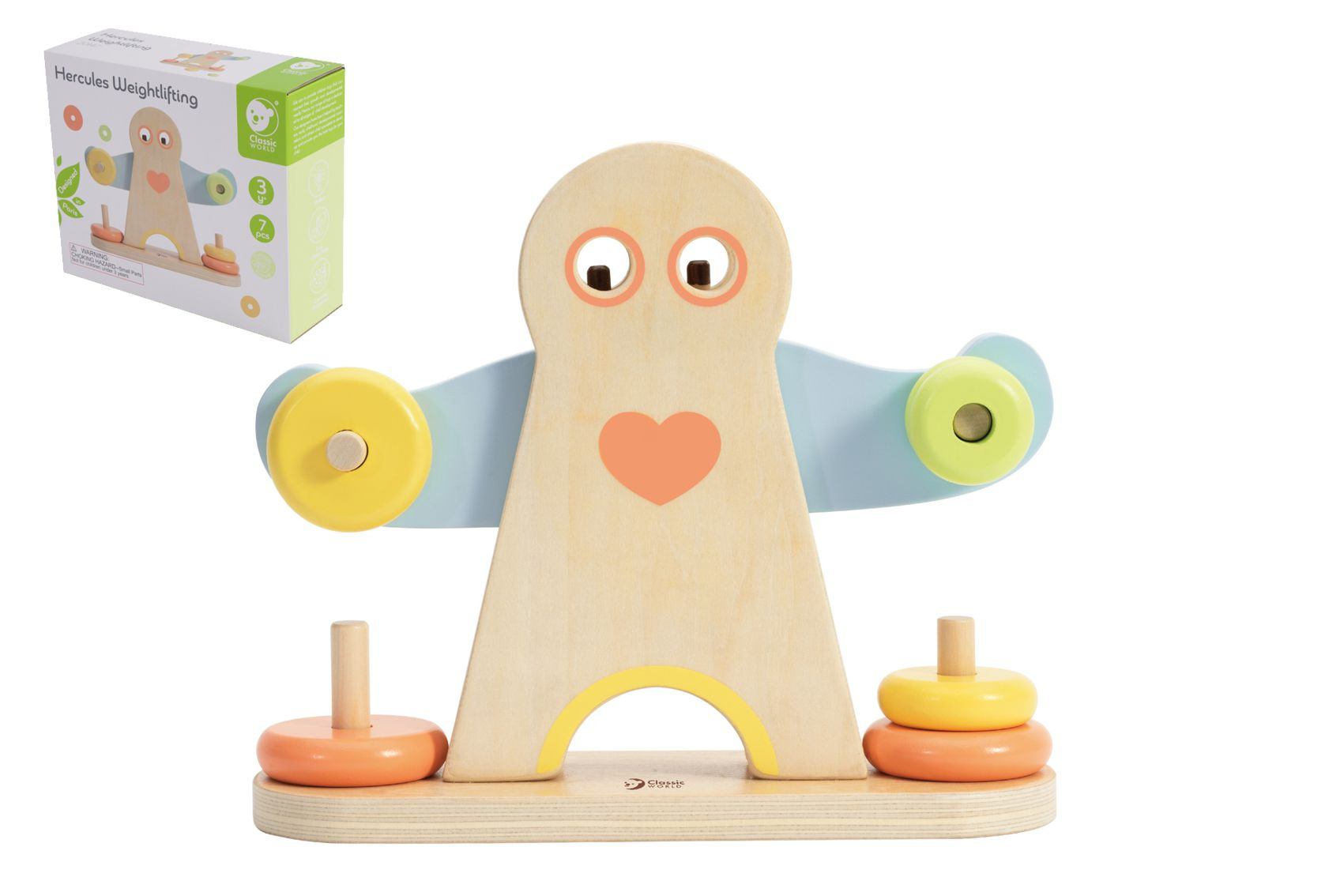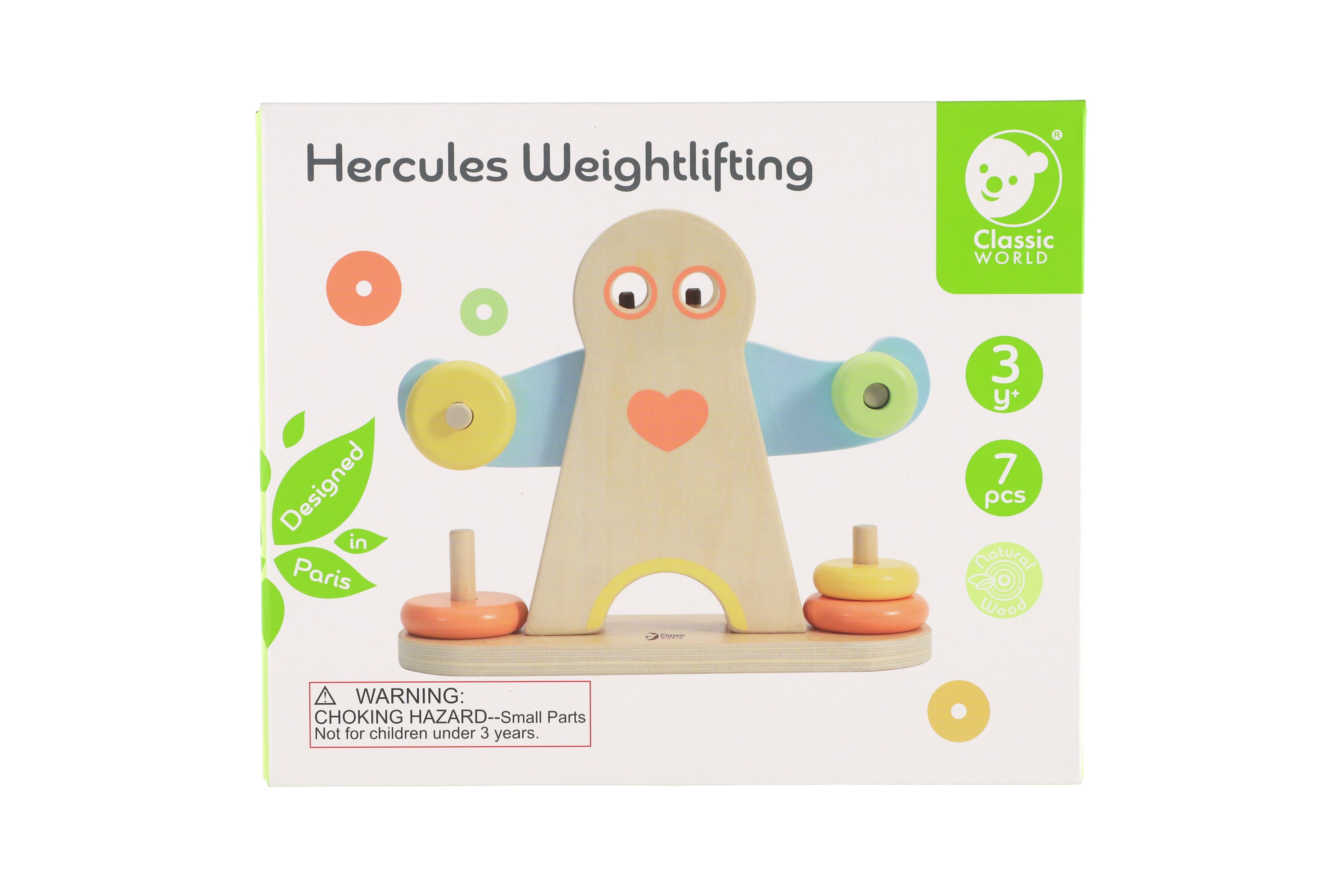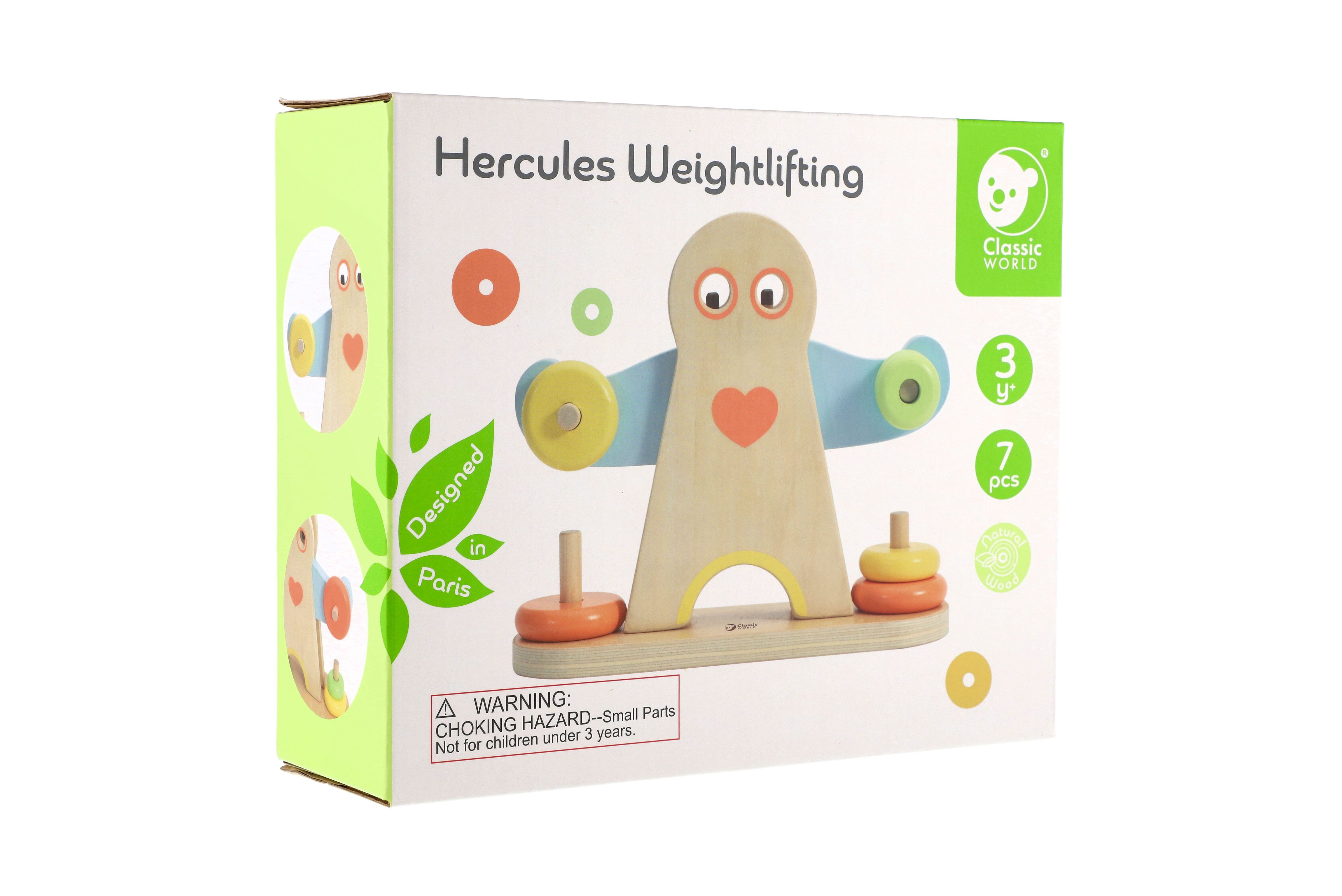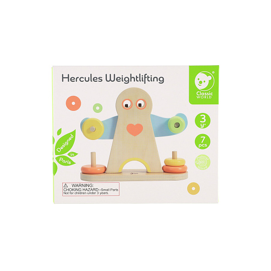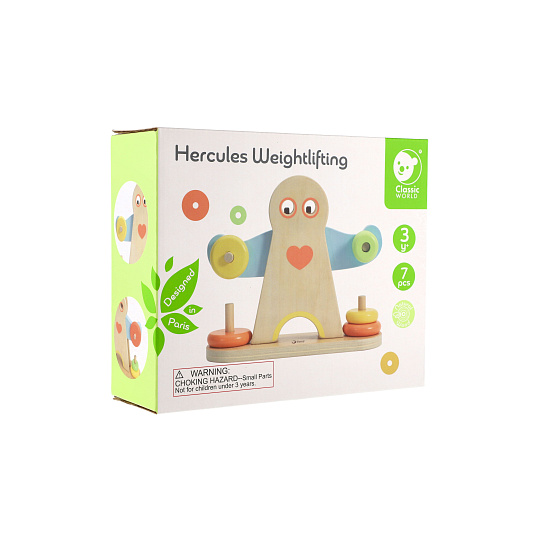 Podívejte se, jak je Herkules silný. Změnou závaží na pažích Herkula se děti mohou naučit o hmotnosti. Balení obsahuje 7 dřevěných dílků. Rozměr krabice: 24 x 20 x 8 cm Vhodné pro děti od 3 let
