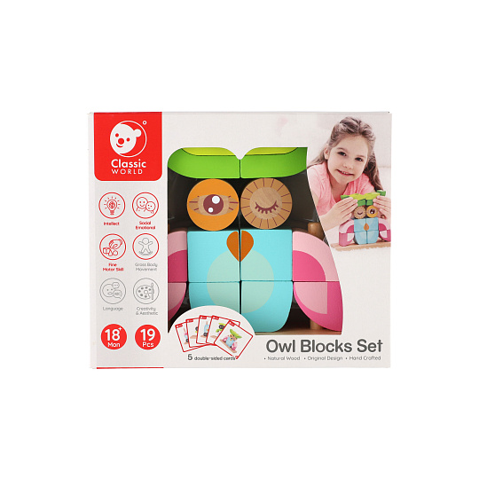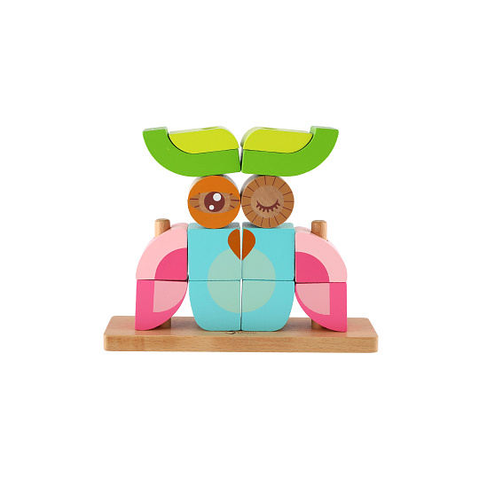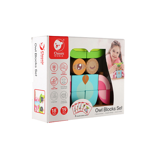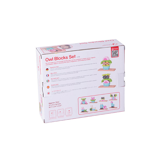 Skládanka sova obsahuje 19 dřevěných dílků (14 kostek, podložka, 4 tyčky), které lze různě stavět na podložku s tyčkami. Děti si tak mohou postavit různé předměty i zvířata. V sadě najdete 5 oboustraných předloh pro skládání. Rozměr krabice: 23 x 19 x 6,5 cm Vhodné pro děti od 18 měsíců
