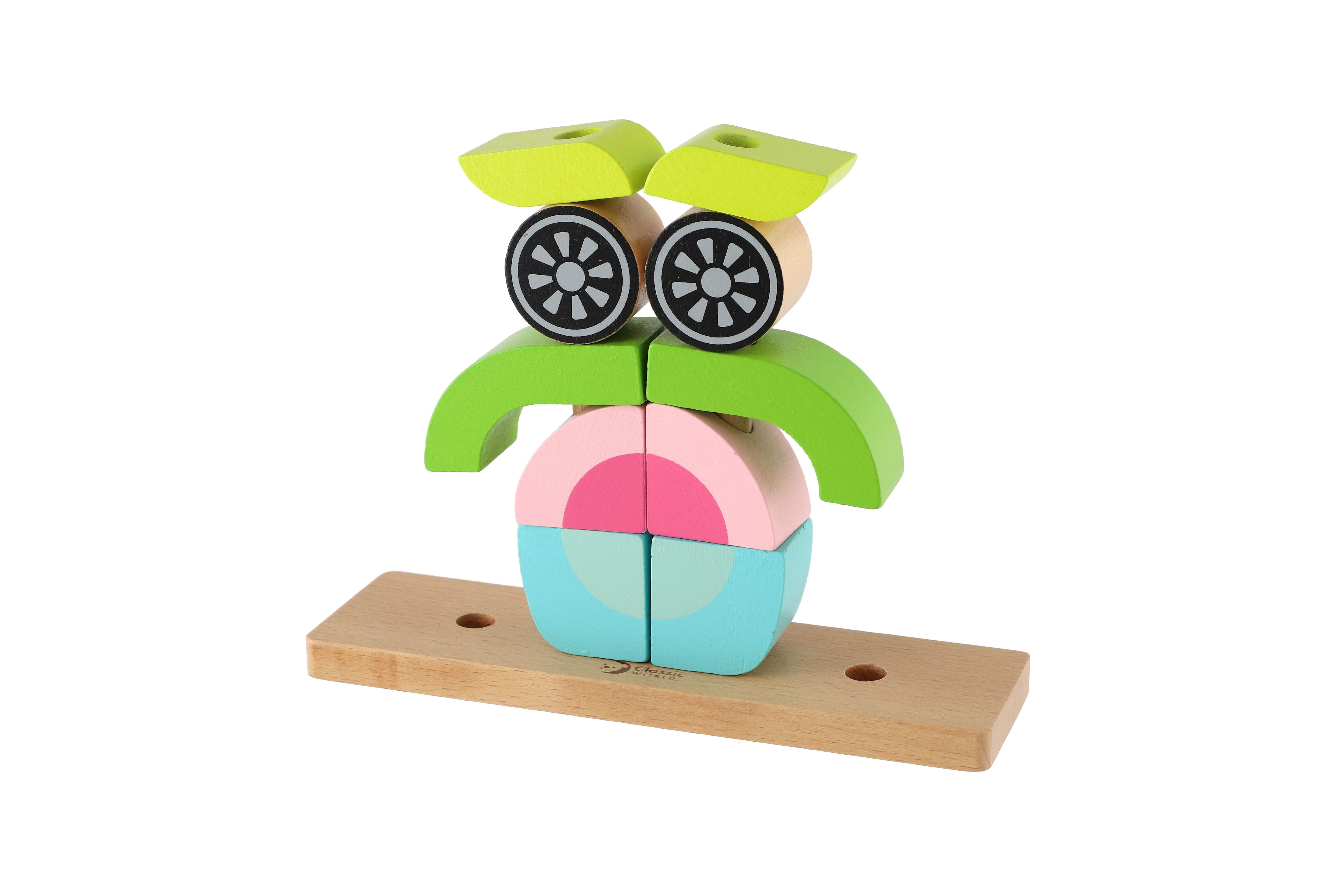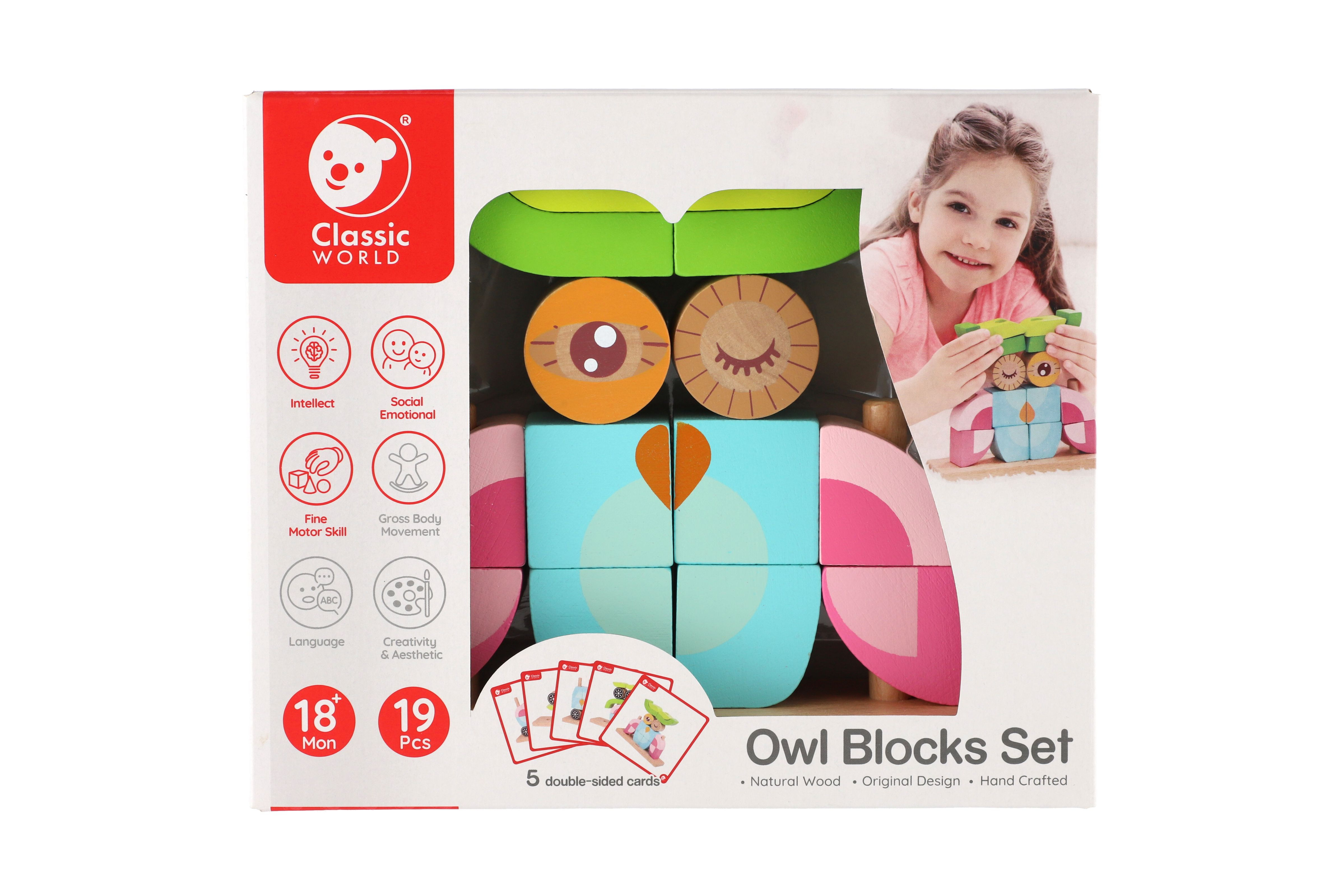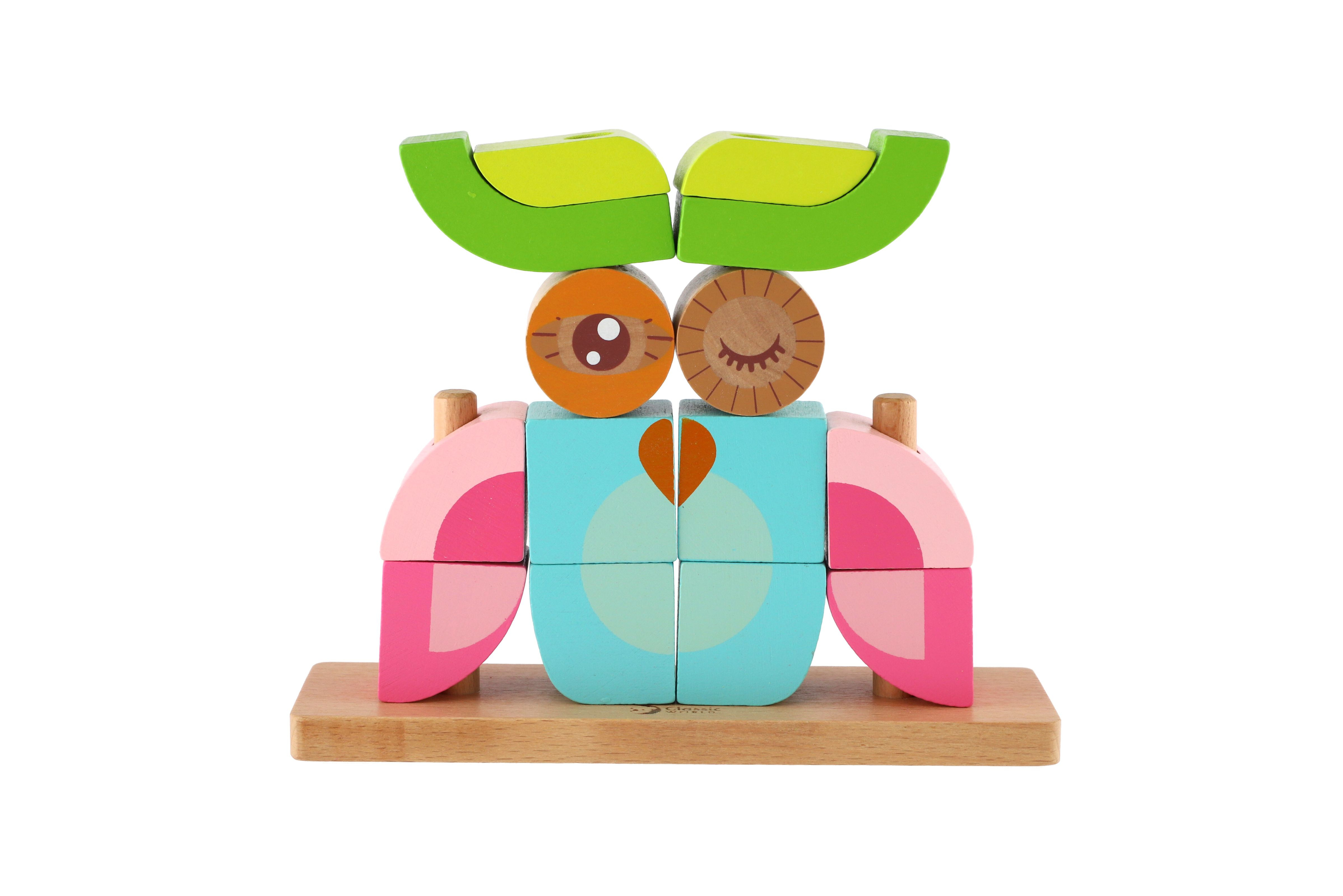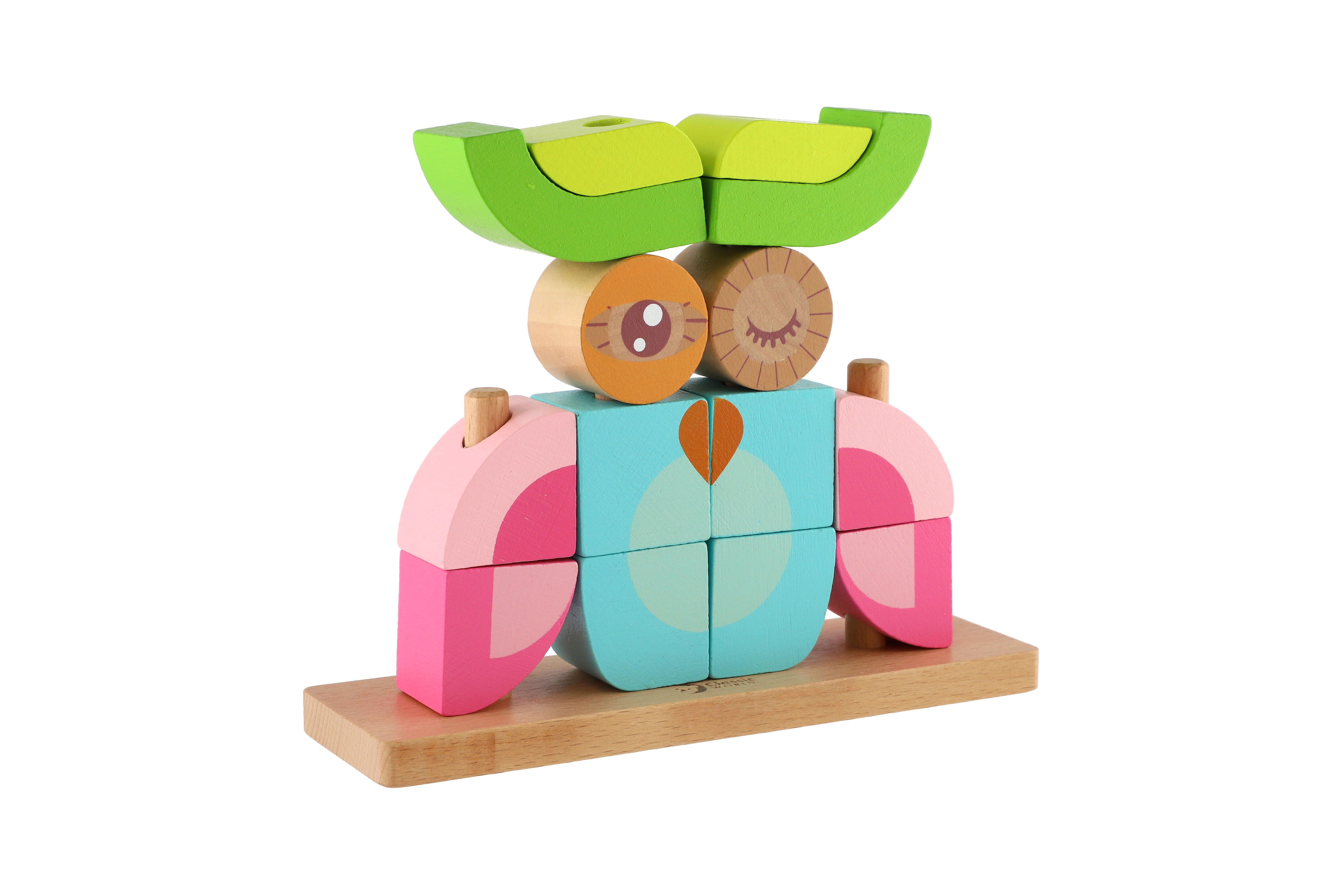 Skládanka sova obsahuje 19 dřevěných dílků (14 kostek, podložka, 4 tyčky), které lze různě stavět na podložku s tyčkami. Děti si tak mohou postavit různé předměty i zvířata. V sadě najdete 5 oboustraných předloh pro skládání. Rozměr krabice: 23 x 19 x 6,5 cm Vhodné pro děti od 18 měsíců