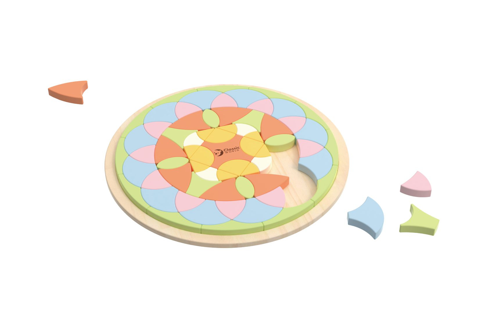 Skládanka/vkládačka mandala dřevo 71ks v krabici 23x23x5cm