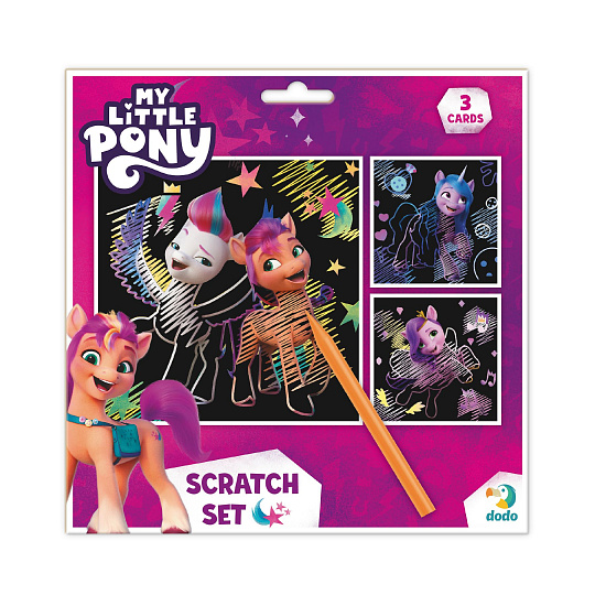 Škrabací obrázek, kde perem šeškrábete dle linek kresbu s motivem My little pony. Dítě nakonec získá obrázek, kterým si může vyzdobit pokojíček, přičemž samo získá mnoho potřebných dovedností, jako je pozornost, trpělivost, opatrnost a přispěje k rozvoji tvořivého talentu a motoriky. V balení jsou tři obrázky. Velikost obrázku: 20 x 20 cm Vhodné pro děti od 5 let