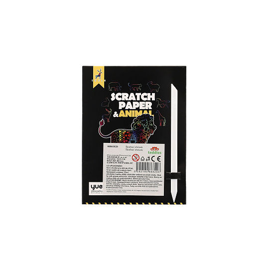 Škrabací obrázek, kde perem šeškrábete dle vlastní fantazie zvíře. Doškrabejte mu např. srst, obličej atp. Dítě nakonec získá obrázek, kterým si může vyzdobit pokojíček, přičemž samo získá mnoho potřebných dovedností, jako je pozornost, trpělivost, opatrnost a přispěje k rozvoji tvořivého talentu a motoriky. Sada obsahuje 8 obrázků zvířat. Rozměry balení 13 x 16 x 0,5 cm. Vhodné pro děti od 3 let.