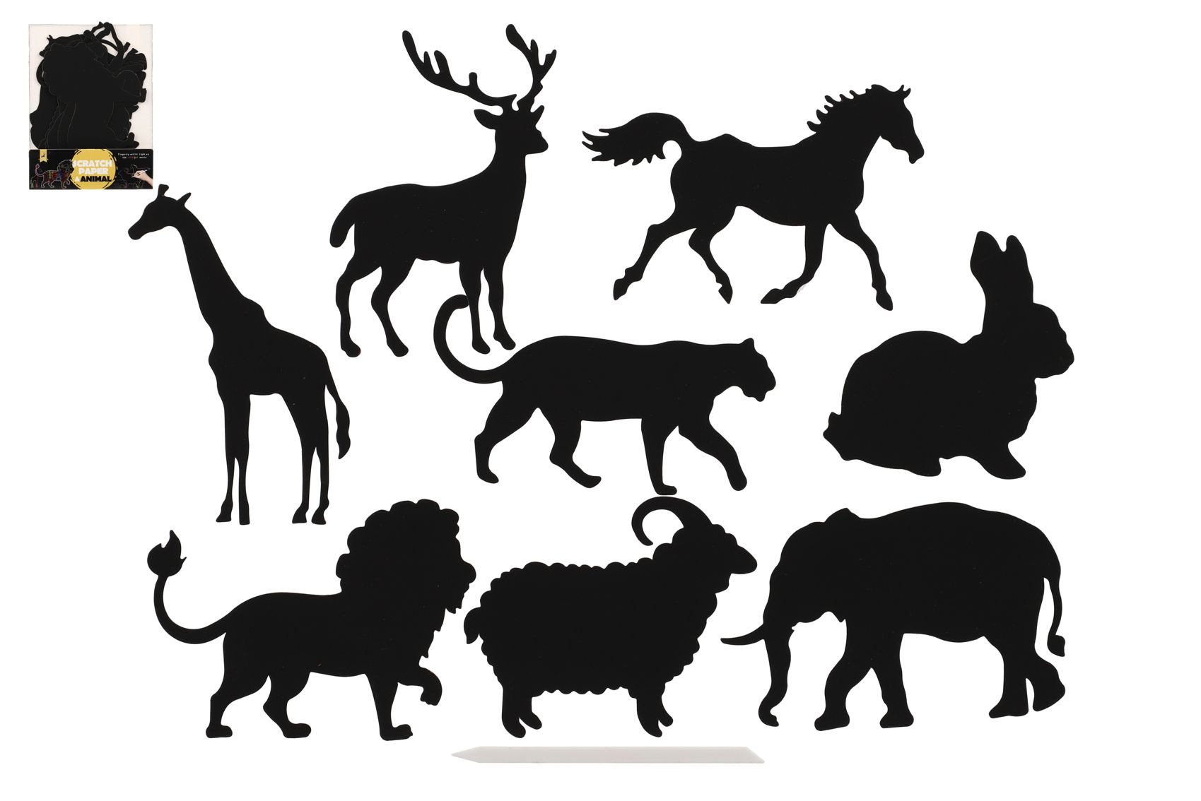 Škrabací obrázek 8ks výřez duhový zvířata 14-15cm v sáčku