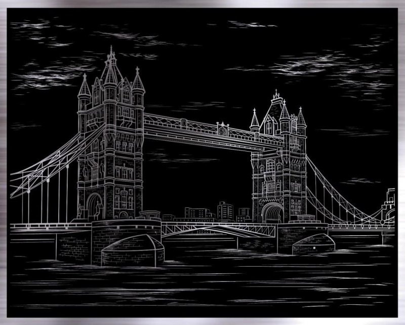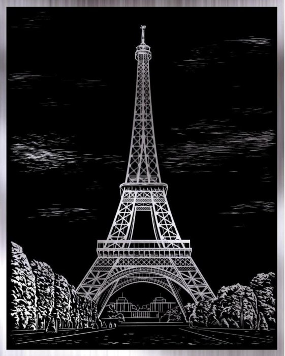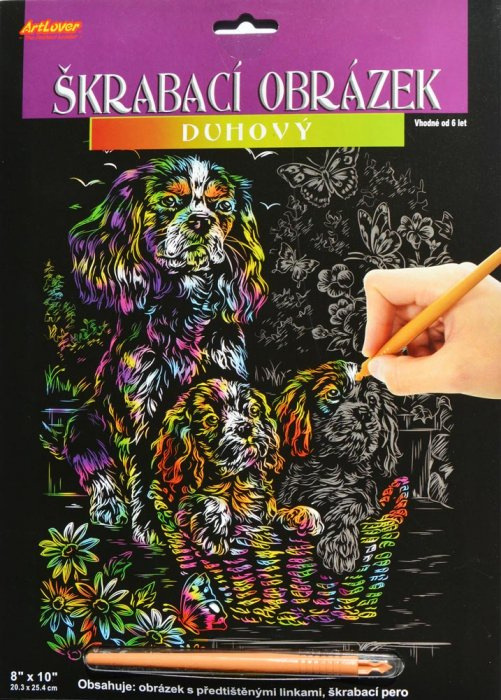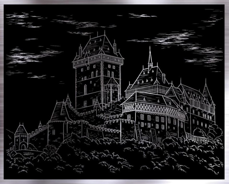 Pomocí přiloženého škrabacího pera seškrabujete předtištěné linky obrázku. Vznikne krásný rytinový obrázek, který se hezky leskne z různých úhlů pohledu. Velikost obrázku 20 x 15 cm.