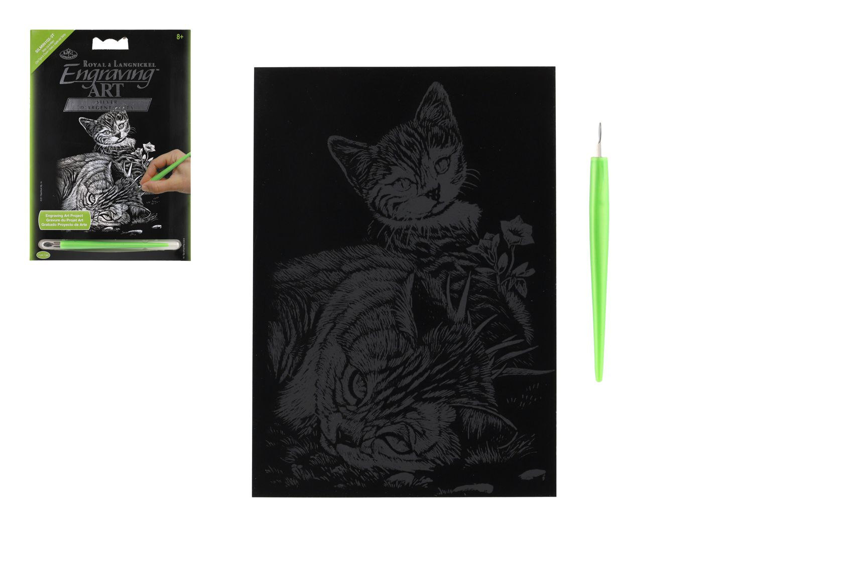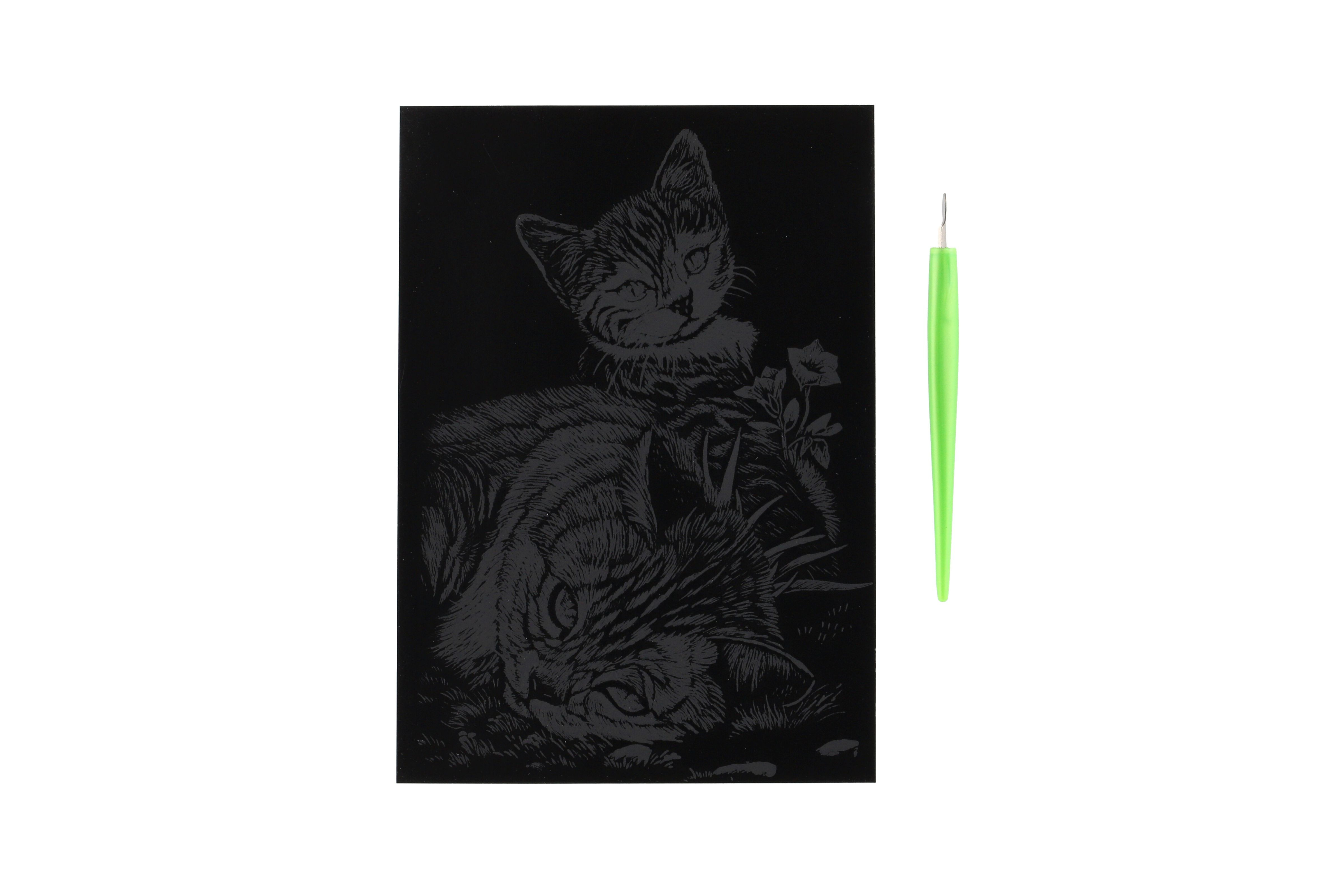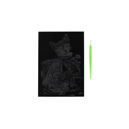 SMT Creatoys Škrabací obrázek stříbrný Kočička a kotě 12,5x18cm na kartě