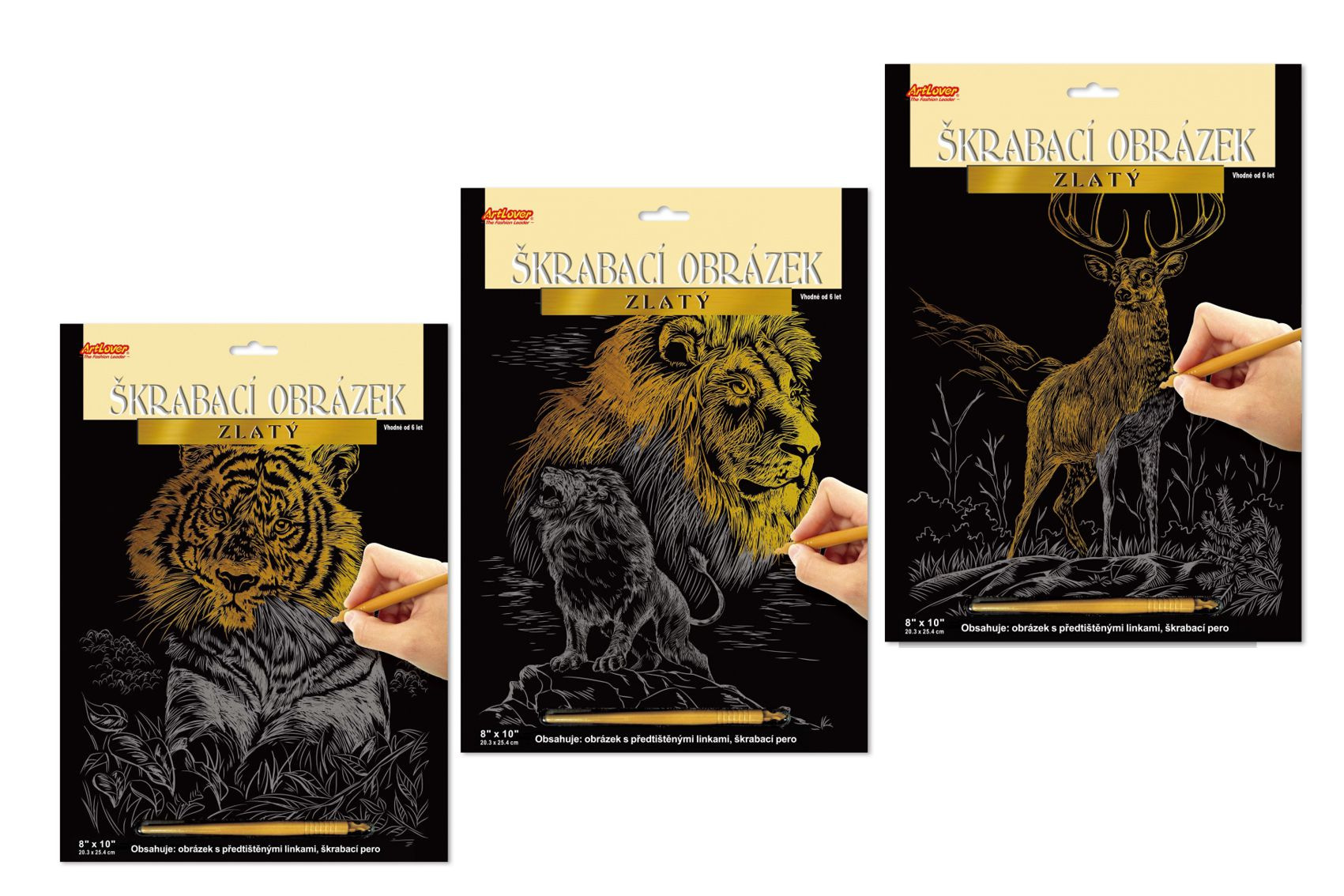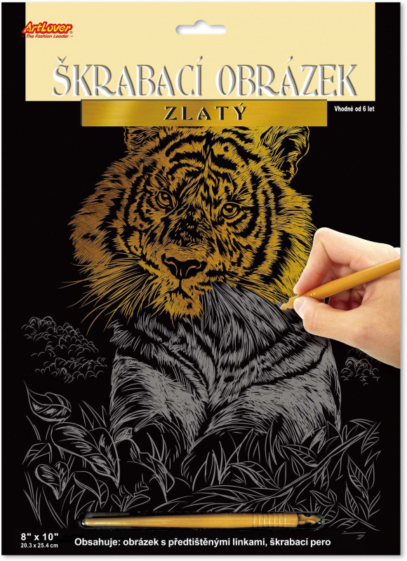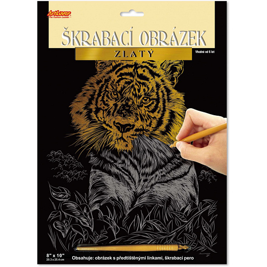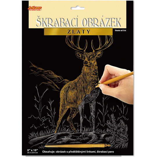 Pomocí přiloženého škrabacího pera seškrabujete předtištěné linky obrázku. Vznikne krásný rytinový obrázek, který se hezky leskne z různých úhlů pohledu. Velikost obrázku 20 x 15 cm.