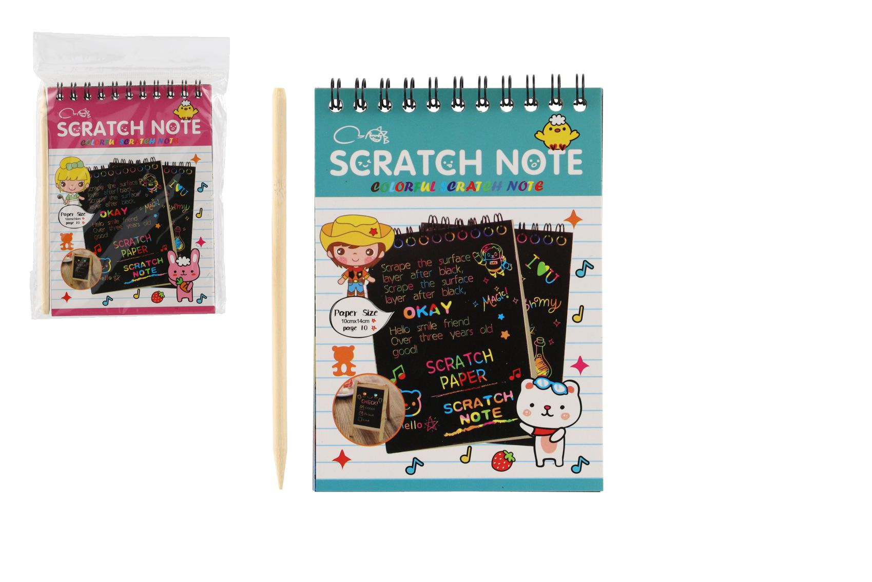 Teddies Škrabací/Vyškrabovací notes barevný 10 listů 10x14cm 2 barvy
