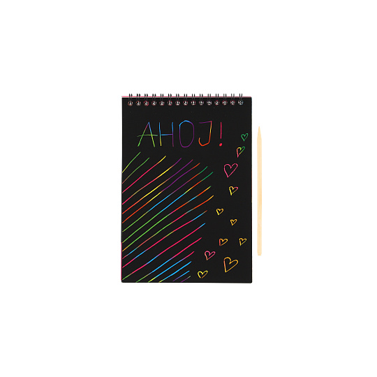 Děti se mohou kreativně vydovádějte na vyškrabovacím notesu. Na jednotlivých listech mohou pomocí přiloženého vyškrabovacího pera vytvářet různé pestrobarevné obrázky. Obsahuje 10 listů Rozměr notesu: 20 x 14 cm
