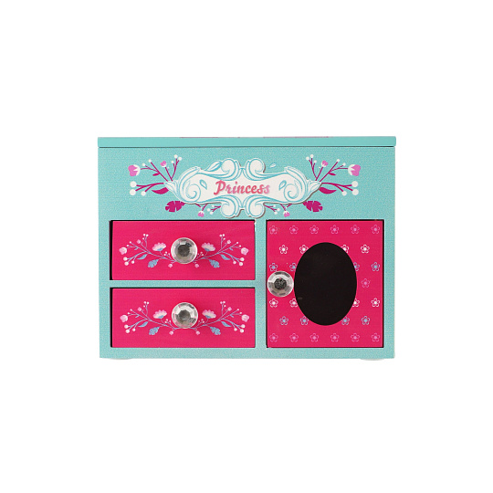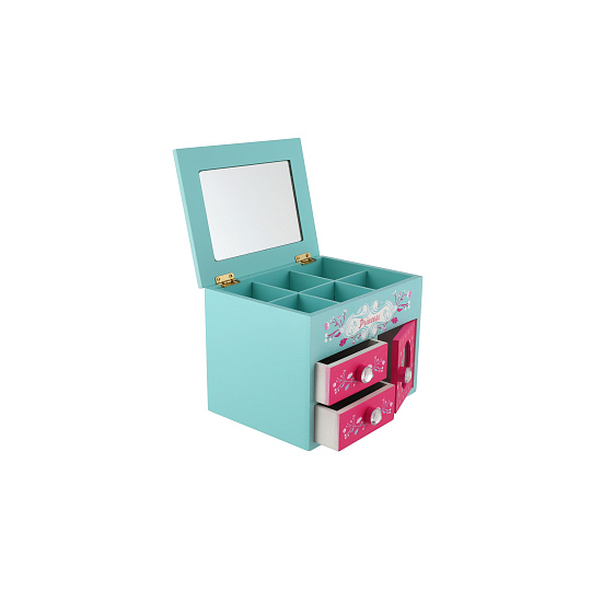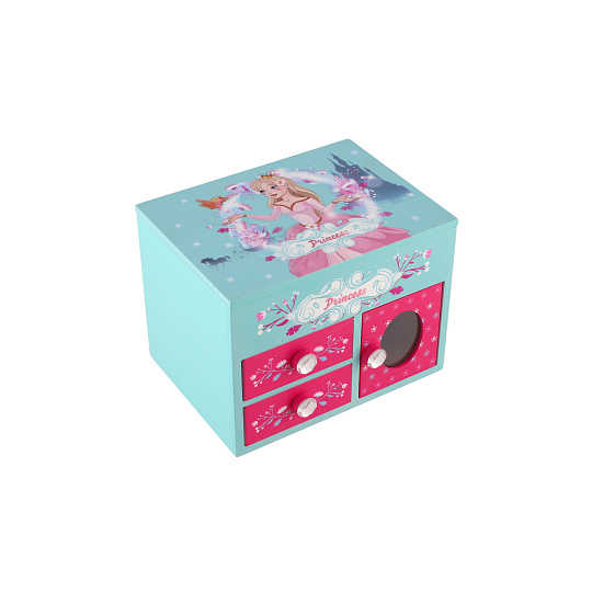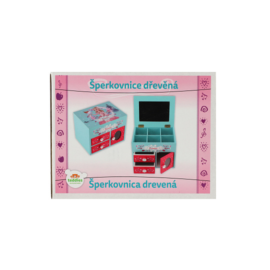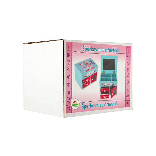 Skříňka šperkovnice Princess 3 zásuvky odklápěcí vrch se zrcátkem dřevo 16x12,5x12cm v krabici