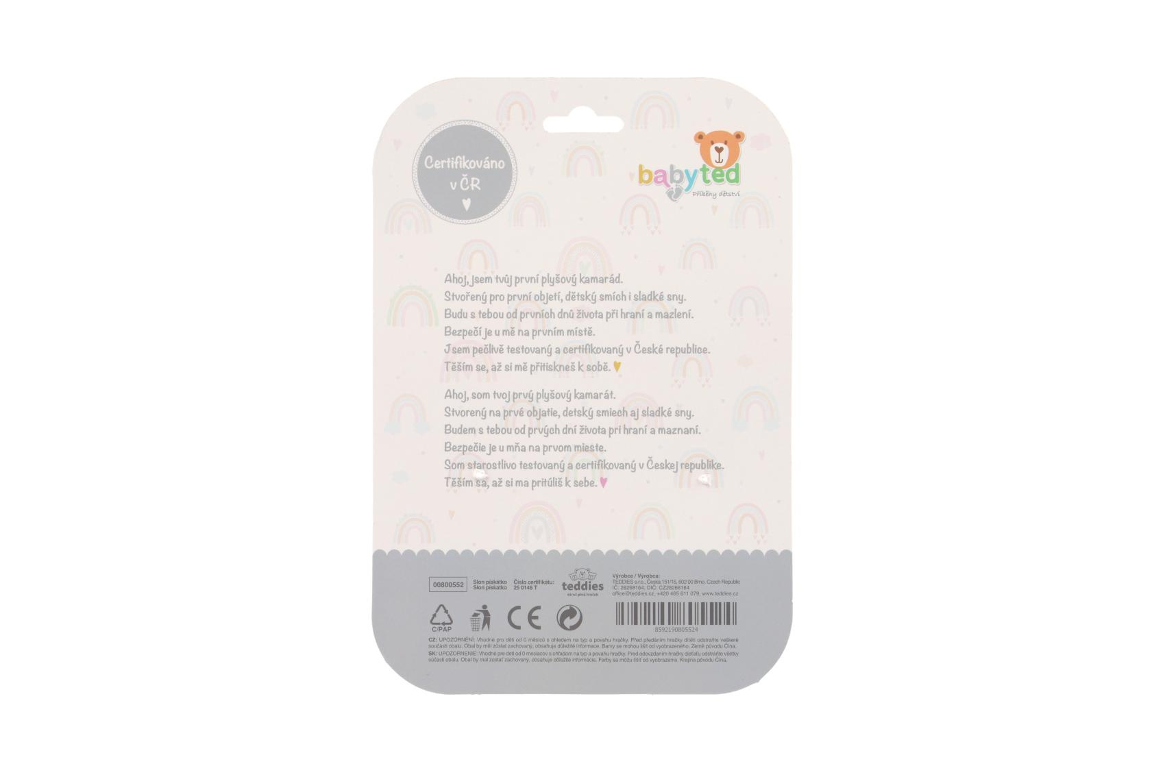 Slon babyted pískátko/kousátko plyš 25cm na kartě v sáčku 0m+