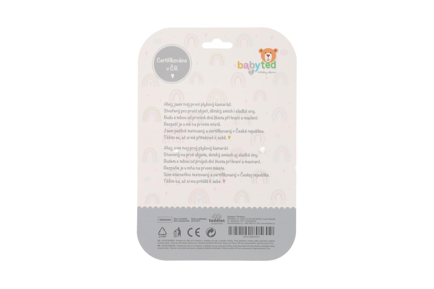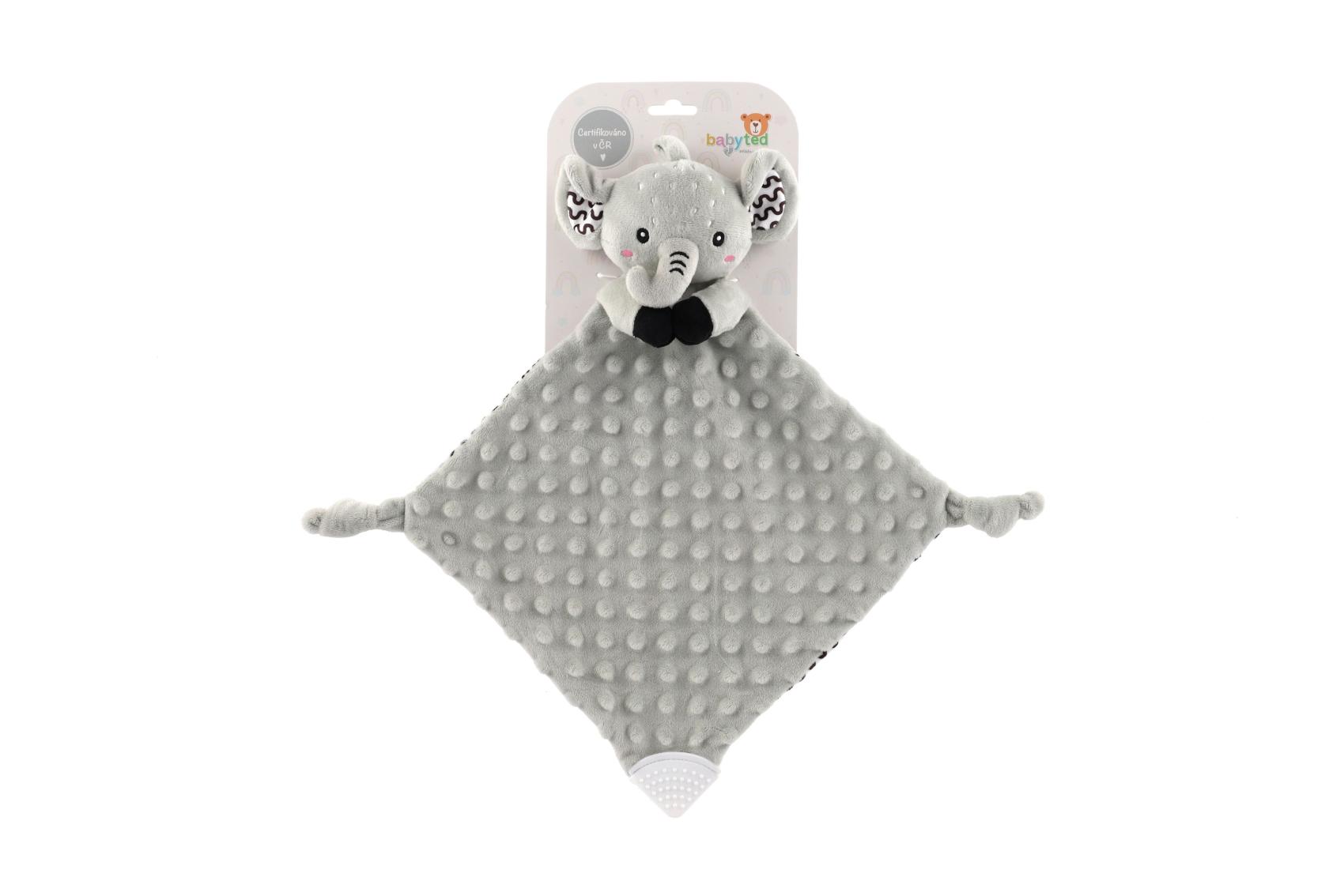 Slon usínáček babyted kousátko, chrastítko plyš 25x25cm na kartě v sáčku 0m+