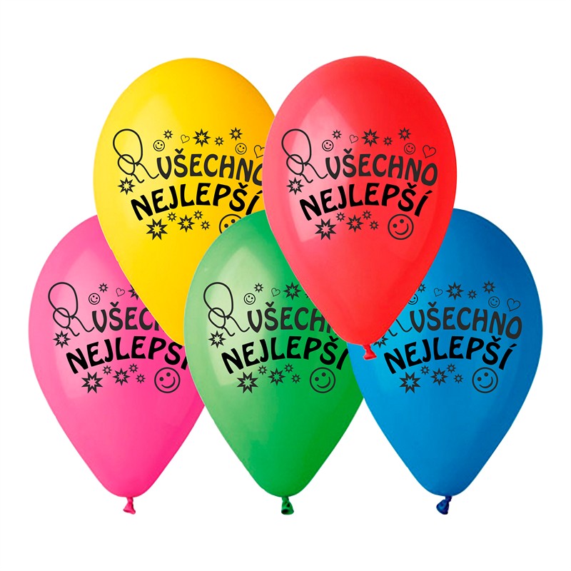 Smart Balloons Balonek nafukovací 10'' průměr 26cm Všechno nejlepší 10ks v sáčku