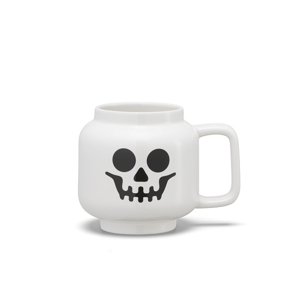 • keramický hrnek v podobě klasické hlavy minifigurky s potiskem obličeje kostlivce