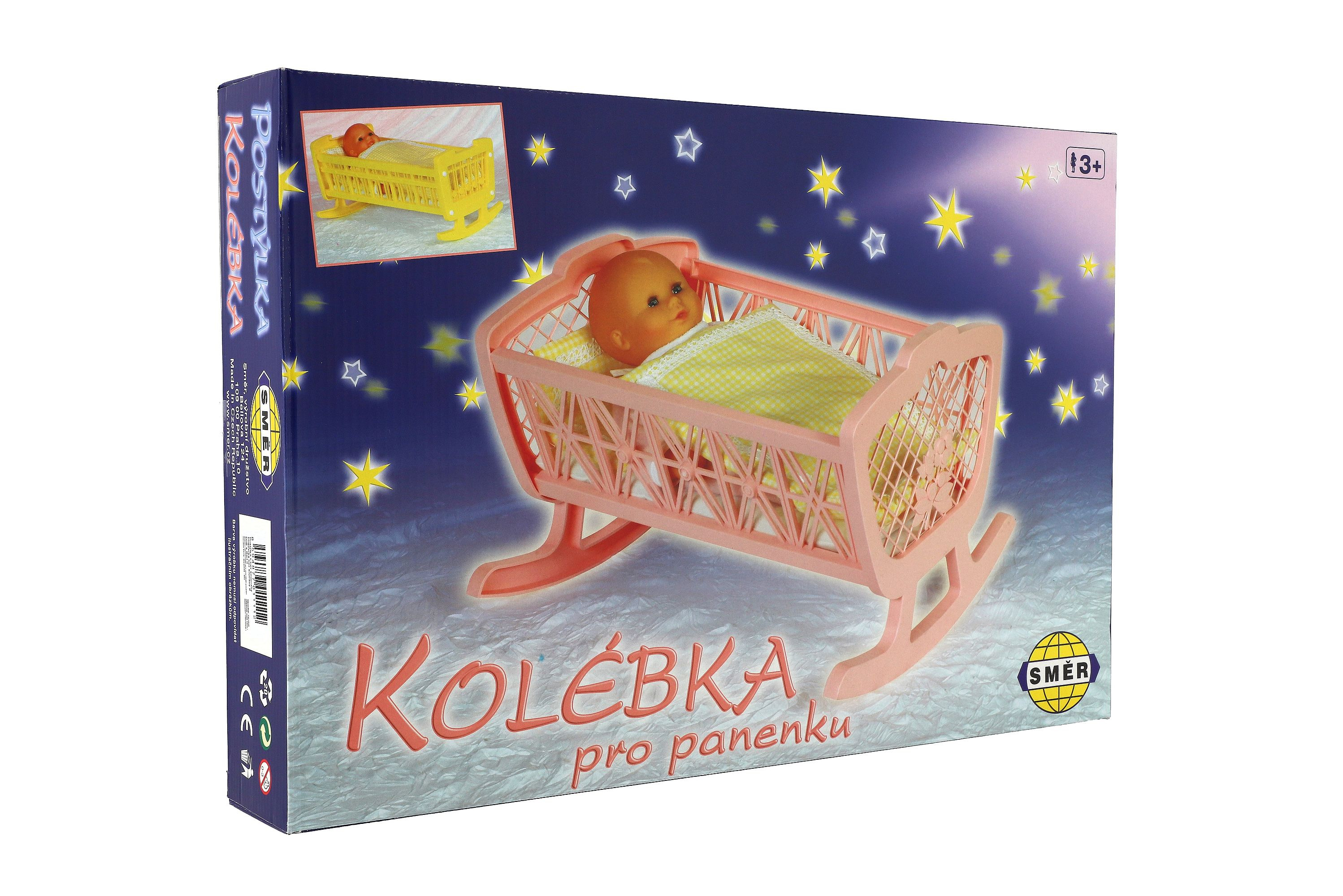 Plastová postýlka pro panenky bez soupravy. Rozměr 32x47x26 cm v krabici. Vhodné od 3 let.