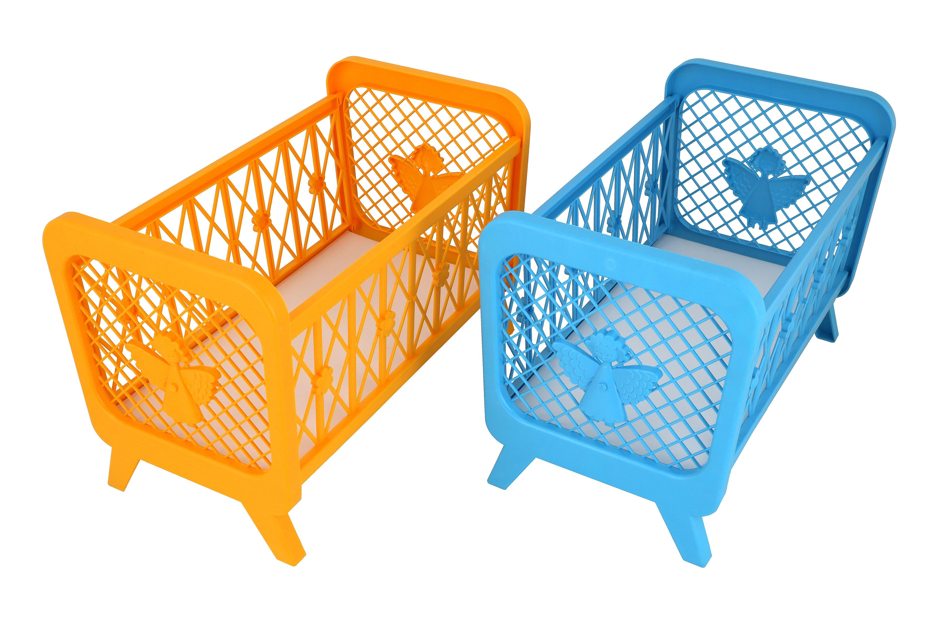 Postýlka pro panenky bez soupravy plast 32x47x26cm mix barev v krabici 48x33x8cm