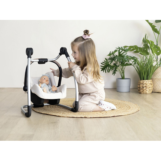 Autosedačka Maxi-Cosi 3 v 1 pro panenky. Při zavěšení sedačky na konstrukci je rázem houpačka pro panenku do velikosti 42 cm. Otočením konstrukce získáte vysokou jídelní židličku s pultíkem. Rozměry (DxŠxV): 43 x 41 x 72 cm.