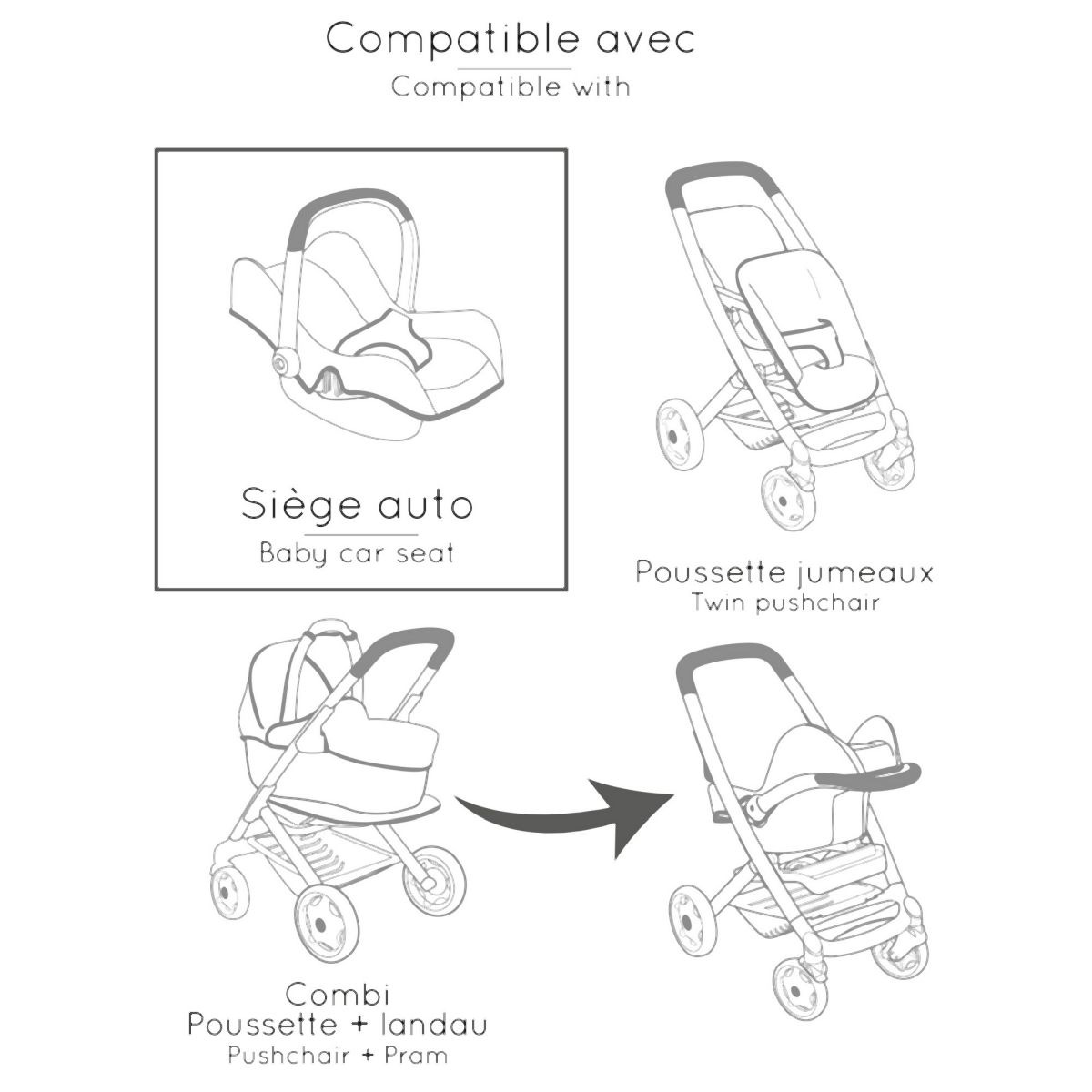 Smoby 3v1 Autosedačka a židlička MC&Q pro panenky béžová
