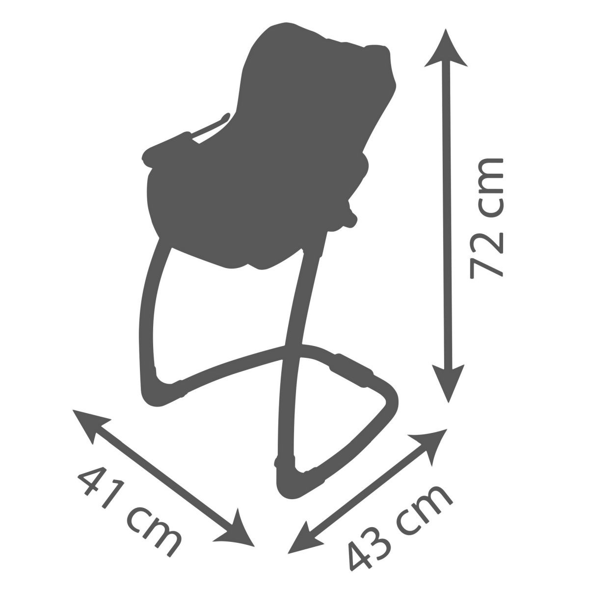 Autosedačka Maxi-Cosi 3 v 1 pro panenky. Při zavěšení sedačky na konstrukci je rázem houpačka pro panenku do velikosti 42 cm. Otočením konstrukce získáte vysokou jídelní židličku s pultíkem. Rozměry (DxŠxV): 43 x 41 x 72 cm.