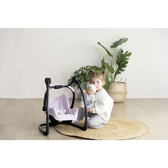 Autosedačka Maxi-Cosi 3 v 1 pro panenky. Při zavěšení sedačky na konstrukci je rázem houpačka pro panenku do velikosti 42 cm. Otočením konstrukce získáte vysokou jídelní židličku s pultíkem. Rozměry (DxŠxV): 43 x 41 x 72 cm.