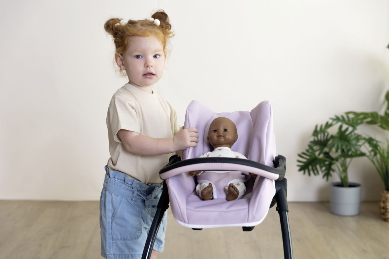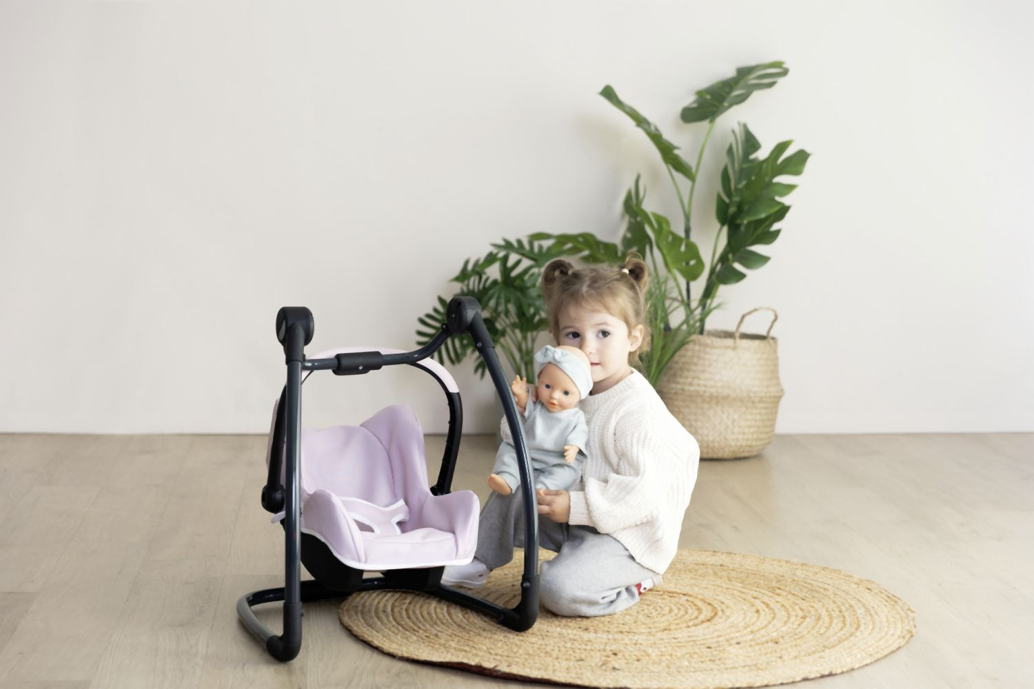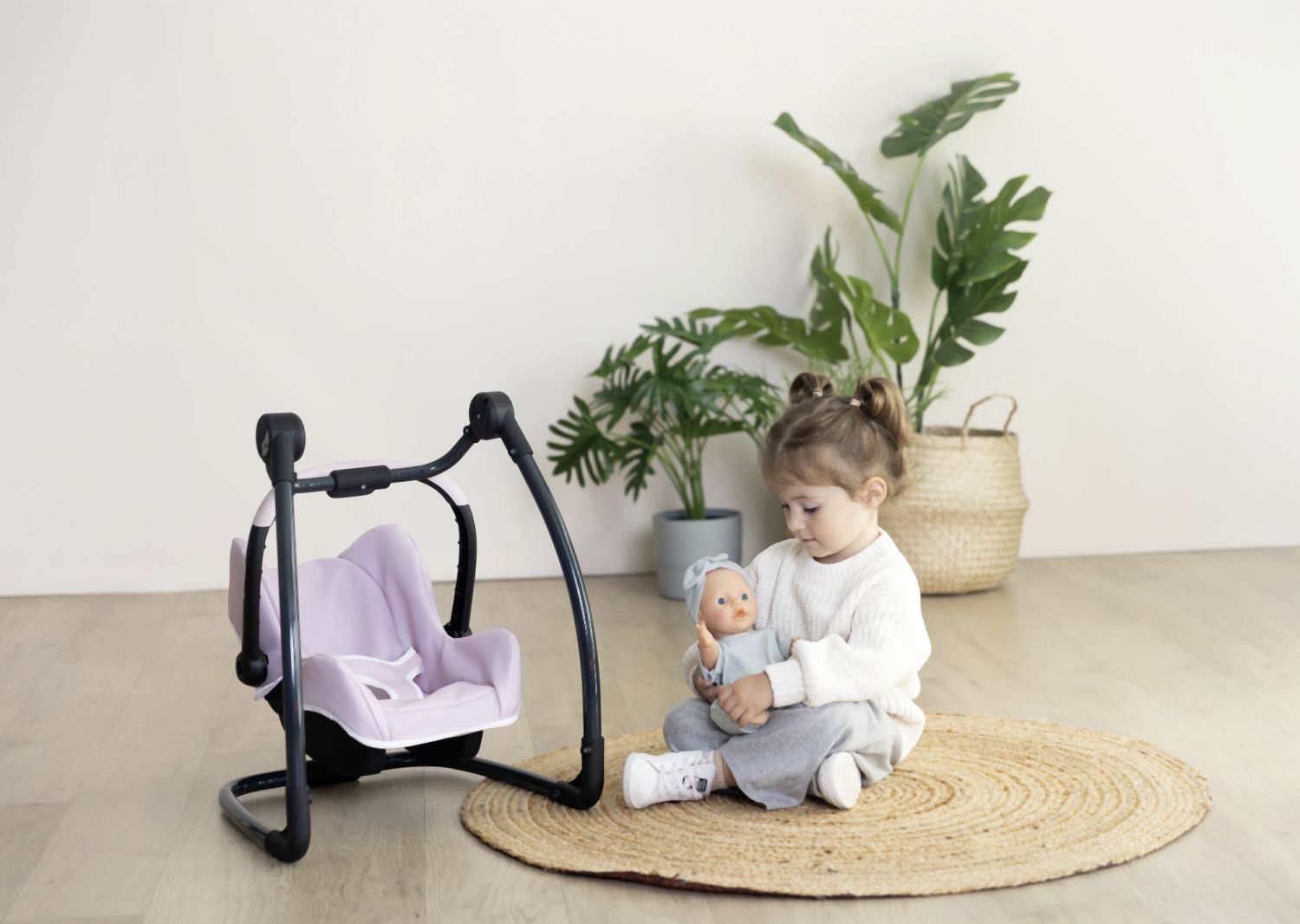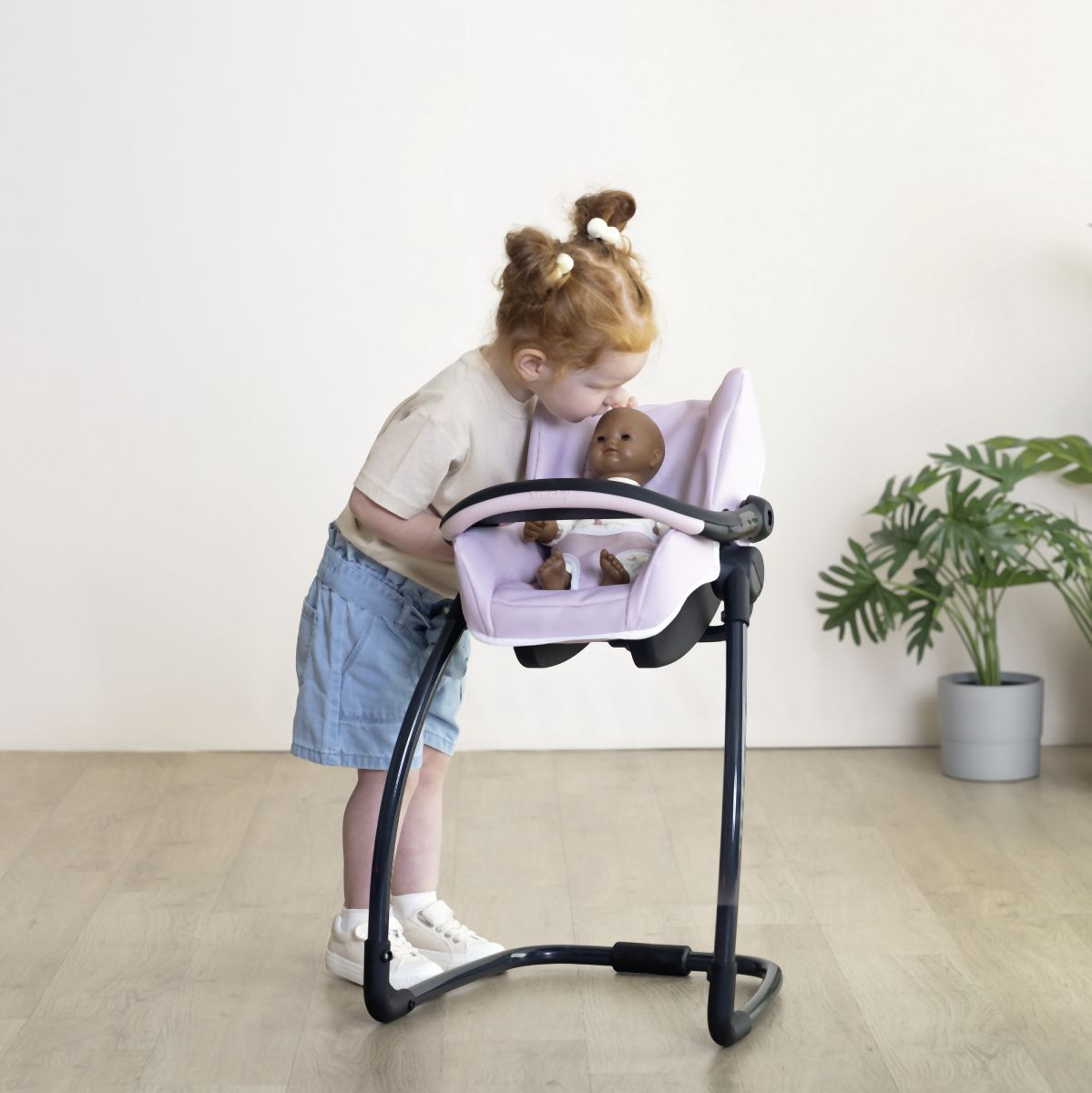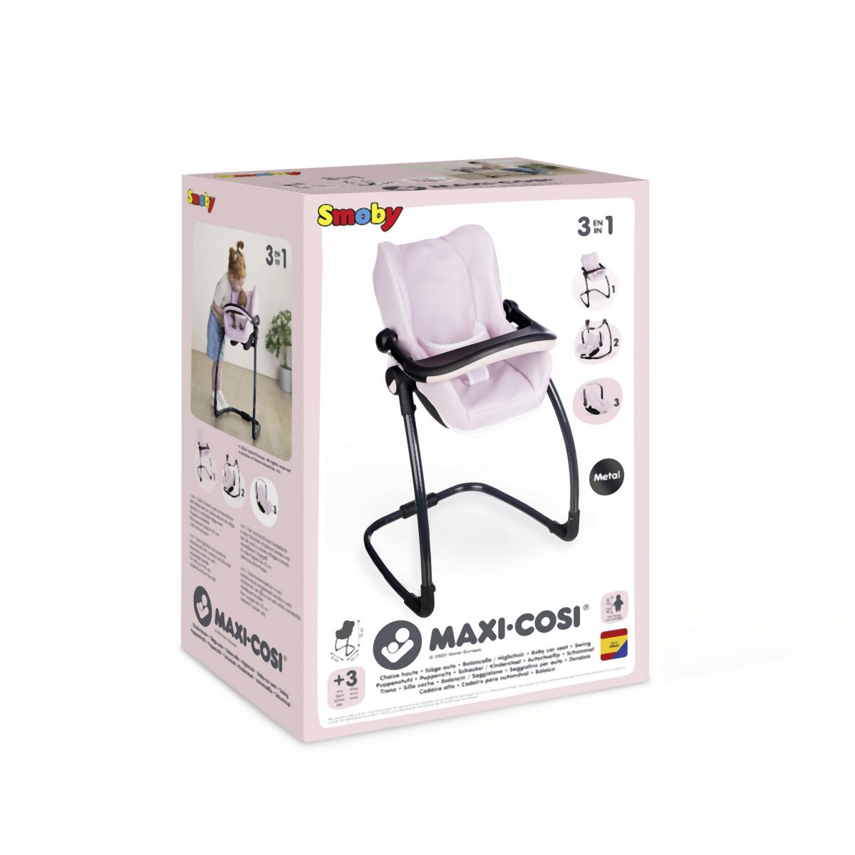 Autosedačka Maxi-Cosi 3 v 1 pro panenky. Při zavěšení sedačky na konstrukci je rázem houpačka pro panenku do velikosti 42 cm. Otočením konstrukce získáte vysokou jídelní židličku s pultíkem. Rozměry (DxŠxV): 43 x 41 x 72 cm.