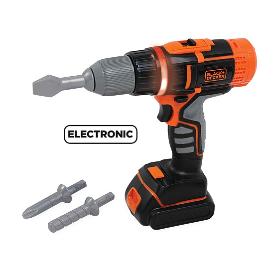 Elektronická aku vrtačka/šroubovák v licenci Black&Decker pro malé kutily. 2 směry otáčení (šroubování / odšroubování). Součástí 2 šroubovací nástavce a vrták. 2 rychlosti - vysoké otáčky pro vrtání, nízké otáčky pro kontrolované šroubování.