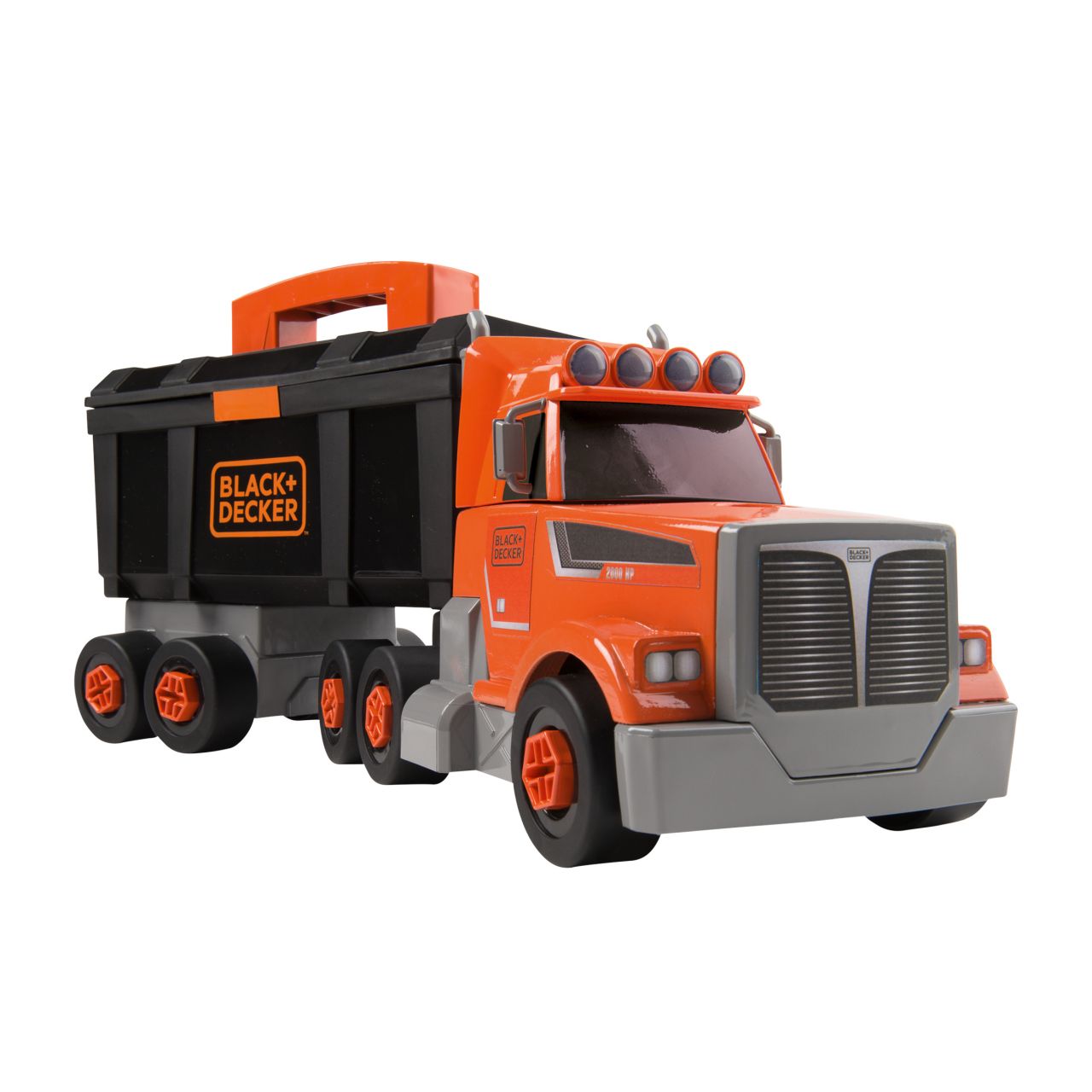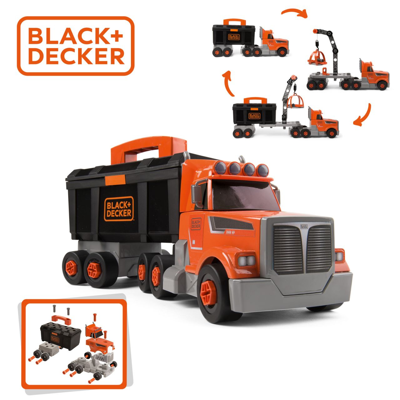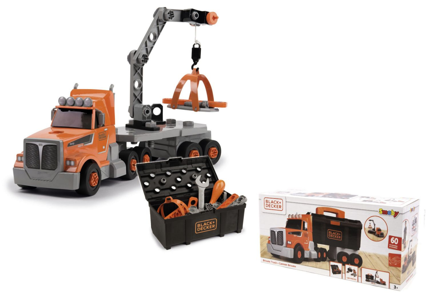 Stavební nákladní auto, přívěs má odnimatelnou schránku na nářadí. Obsahuje mnoho doplňků, ze kterých lze sestavit jeřáb. Rozměry rozbaleného výrobku: 43 x 17,40 x 13,30 cm. Vhodné od 3 let.