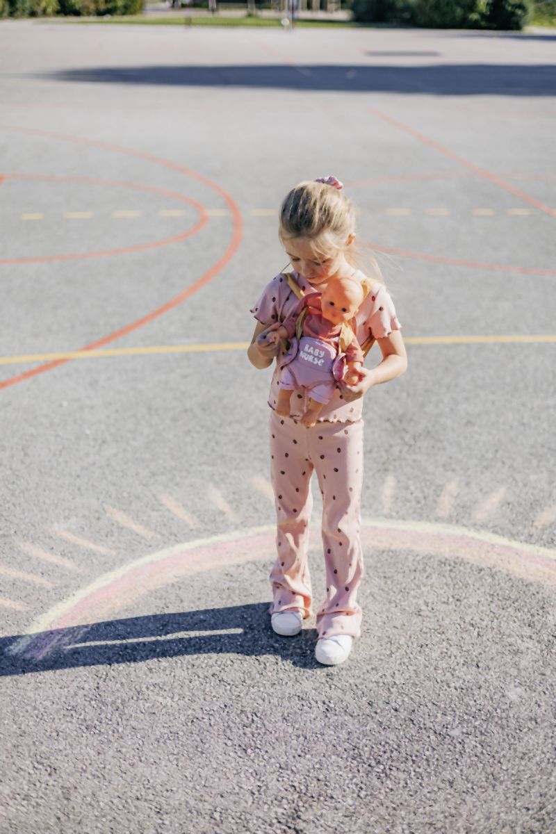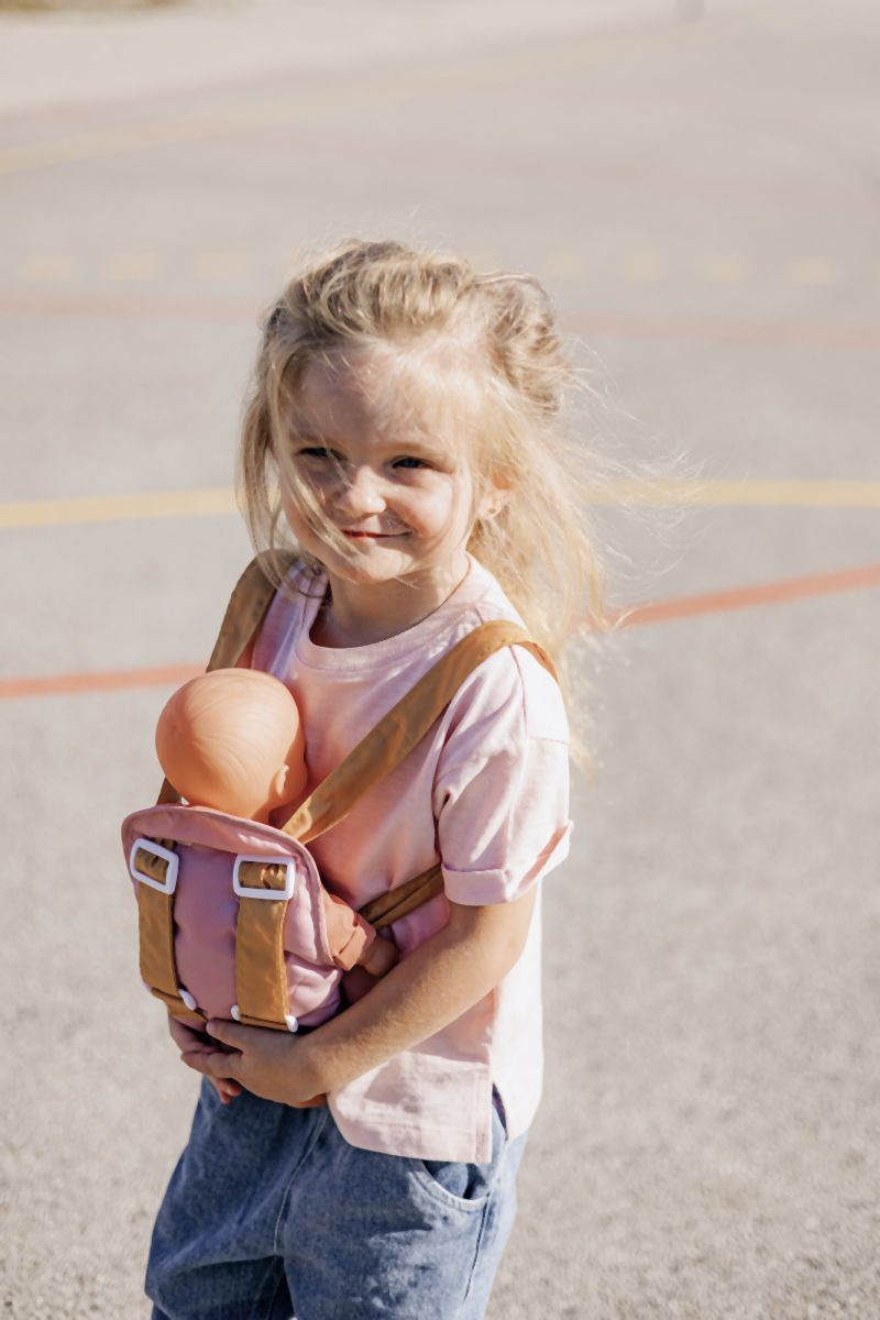 V tomto praktickém nosítku sedí panenka bezpečně a pohodlně. 2 možnosti nošení panenky - otočená čelem směrem ven nebo čelem k holčičce. Délkově nastavitelné ramenní popruhy zajišťují maximální pohodlí jako u skutečného nosítka. Vhodné pro všechny panenky do 42 cm (panenka není součástí balení). Rozměry produktu (DxŠxV): 18,5 x 1 x 24 cm.