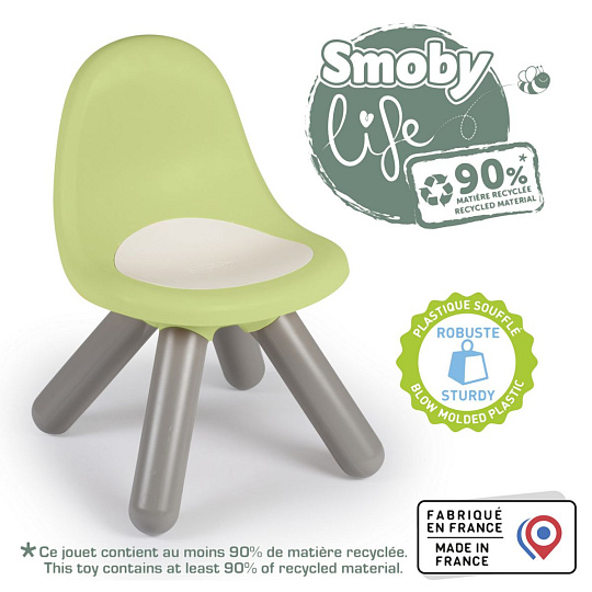 Pohodlná, robustní a designová stolička pro děti je vhodná pro použití uvnitř i venku. Anti-UV ošetření zaručuje dobrou odolnost a trvanlivost barev. Bareva zelená. Max. nosnost 50 kg. Tento výrobek obsahuje minimálně 90 % recyklovaného materiálu. Rozměry židličky (DxŠxV): 33 x 33 x 50 cm.