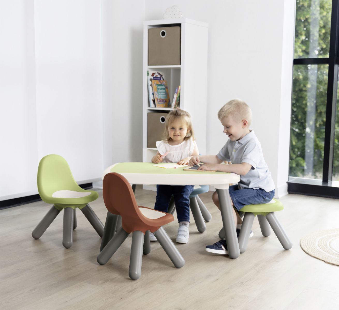 Pohodlná, robustní a designová stolička pro děti je vhodná pro použití uvnitř i venku. Anti-UV ošetření zaručuje dobrou odolnost a trvanlivost barev. Bareva zelená. Max. nosnost 50 kg. Tento výrobek obsahuje minimálně 90 % recyklovaného materiálu. Rozměry židličky (DxŠxV): 33 x 33 x 50 cm.