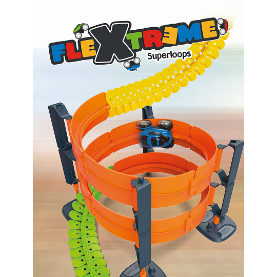 Se sadou superlooping lze ideálně doplnit stávající závodní dráhu FleXtreme.Vytvářejte působivé a originální smyčky, které lze instalovat samostatně na dvě různá místa okruhu Flextreme nebo je sestavit dohromady a vytvořit tak řetězec smyček. Superloops lze instalovat svisle nebo vodorovně a řídit auto do strany. Je také možné rozšířit Superloops přidáním kolejnic mezi dvě části smyčky. Rozměry (DxŠxV): 39 x 39 x 36 cm.