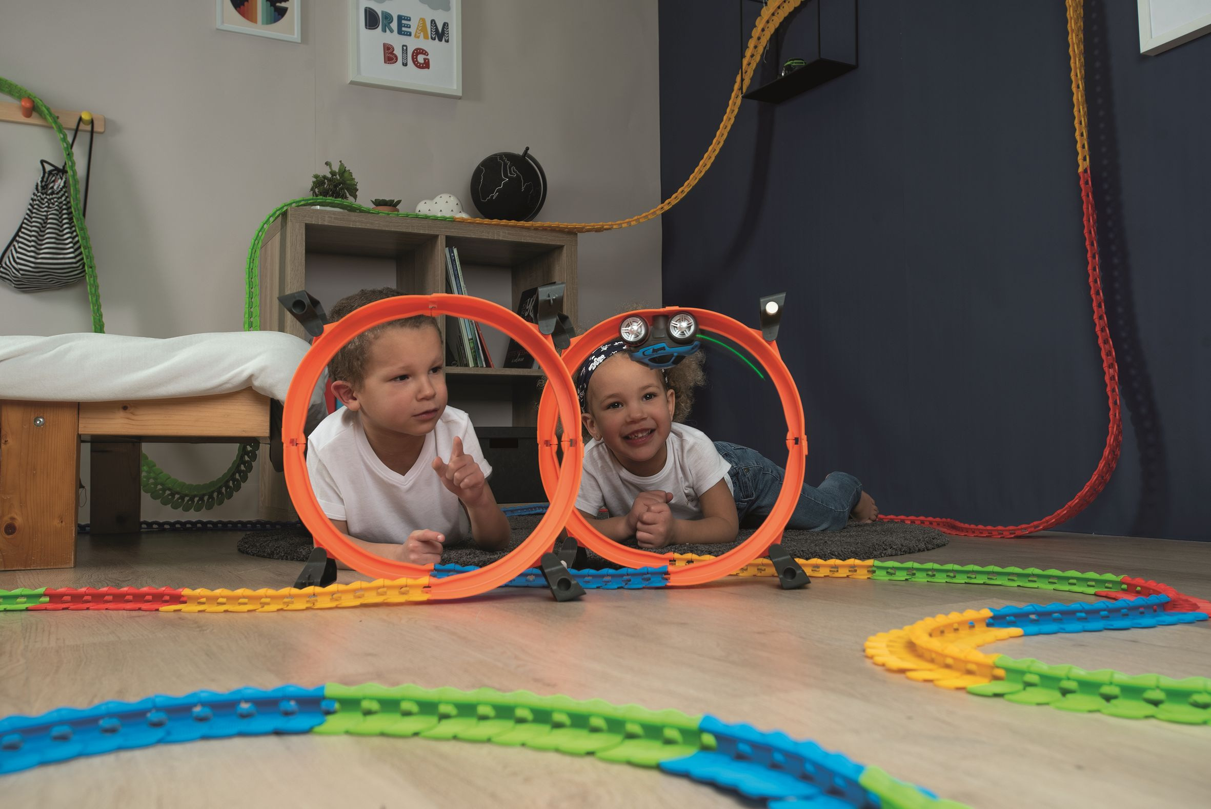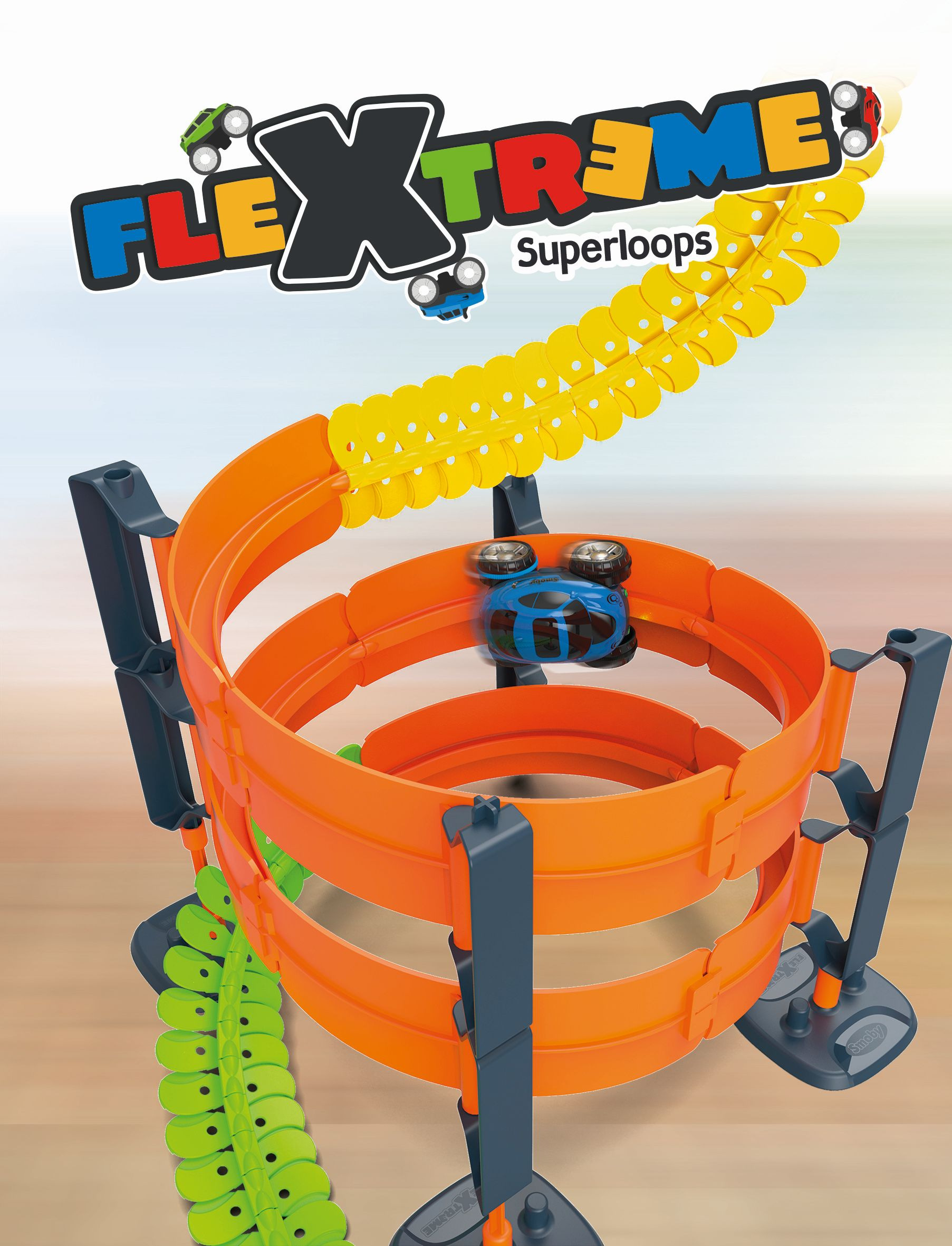 Se sadou superlooping lze ideálně doplnit stávající závodní dráhu FleXtreme.Vytvářejte působivé a originální smyčky, které lze instalovat samostatně na dvě různá místa okruhu Flextreme nebo je sestavit dohromady a vytvořit tak řetězec smyček. Superloops lze instalovat svisle nebo vodorovně a řídit auto do strany. Je také možné rozšířit Superloops přidáním kolejnic mezi dvě části smyčky. Rozměry (DxŠxV): 39 x 39 x 36 cm.