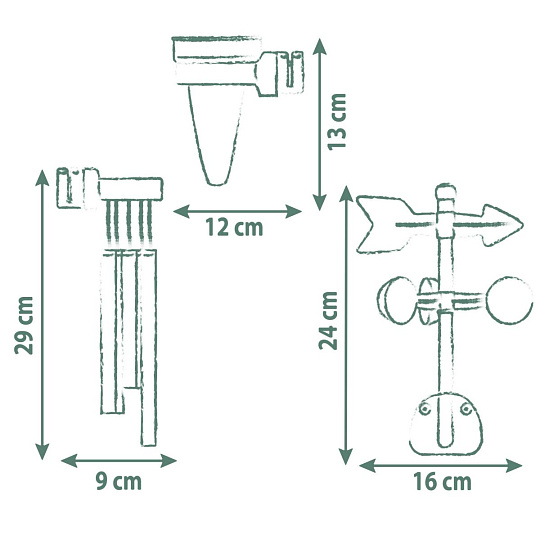 Hrací sada meteorologická stanice ke zkoumání počasí: zvonkohra, větrná korouhvička/anemometr a srážkoměr. Sada je kompatibilní se všemi domečky Smoby. S touto sadou mohou děti objevovat a pozorovat jevy počasí. Lze snadno připevnit. Sada je vyrobena z vysoce kvalitního plastu odolnému vůči UV záření a je zvláště odolná vůči povětrnostním vlivům a vyblednutí.