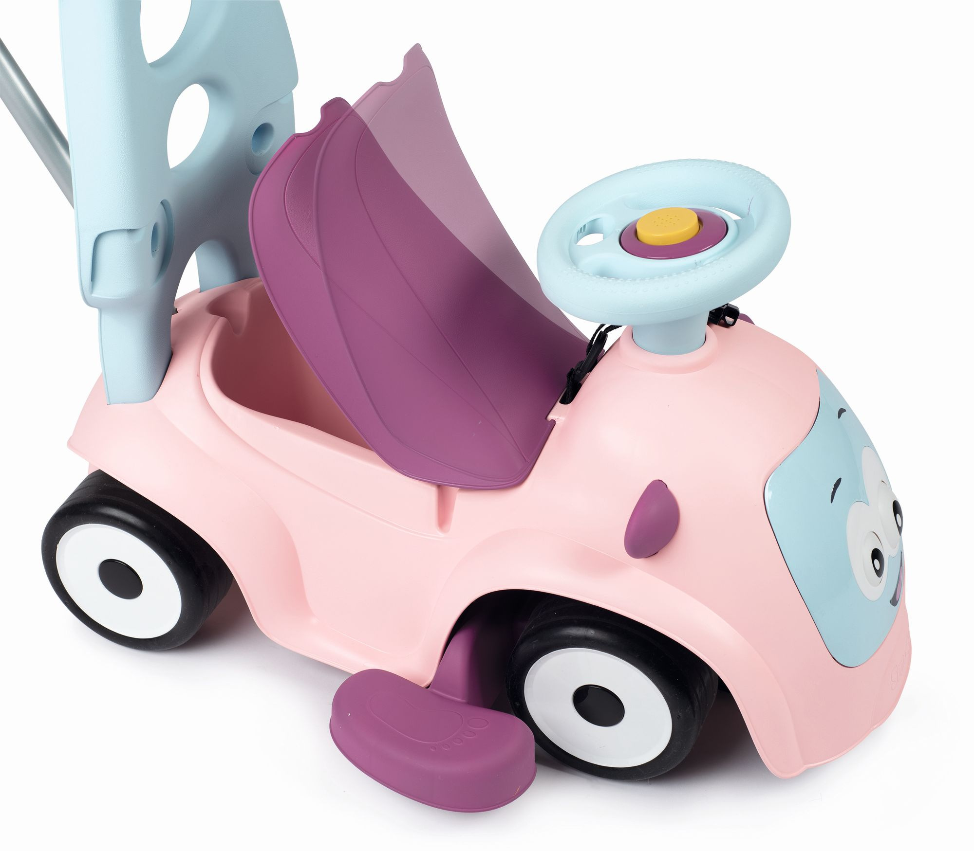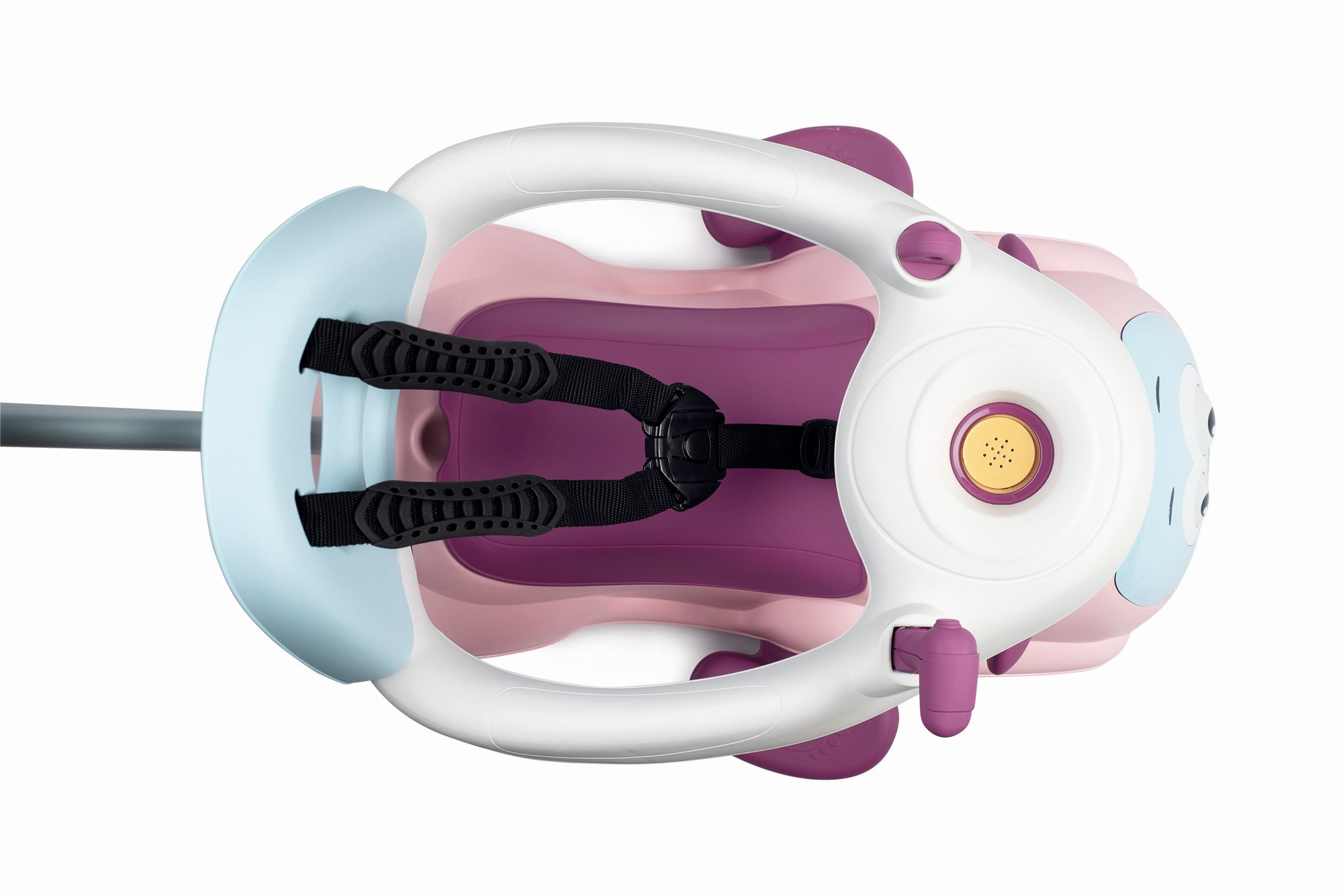 Odrážedlo pro nejmenší, které poroste s dítětem. Odnímatelné rodičovské madlo, snímatelný ochranný rám a bezpečností pás pro nejmenší děti. Volant se zvuky - 3 zvukové efekty, tichá kolečka, pohyblivá očíčka. Hmotnost: 3,555 kg. Rozměry: 61 x 55 x 44 cm.
