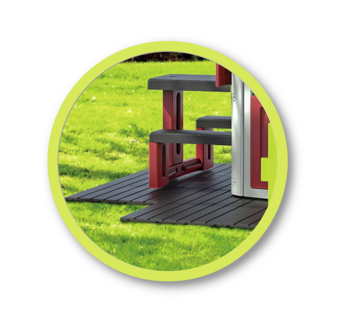 Sada podlahových desek z vysoce kvalitního 100% recykolvatelného plastu s protiskluzovou a UV ochranou. Ideální jako základna pro všechny domečky. Desky s jednoduchým systémem kliknutí. Sada obsahuje 6 ks panelů o rozměrech 45 cm x 45 cm, celková plocha 1,20 m2. Dle potřeby může být rozšířeno o další sady, např. lze vytvořit terasu nebo cestu. Vhodné jako základna pro všechny domečky Smoby a také pro všechny ostatní značky. Rozměry desky (DxŠxV): 45 x 45 x 1,5 cm.