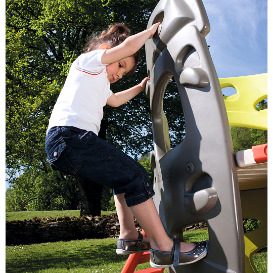 Prolézačka se skluzavkou s délkou skluzu 150 cm. Součástí tři stěny na lezení a žebřík. Anti-UV ošetření zaručuje dobrou odolnost a trvanlivost barev. Rozměry po sestavení: 230 x 140 x 143 cm. Max. nosnost skluzavky 50 kg, max. nosnost platformy 100 kg. Hmotnost 29,24 kg.