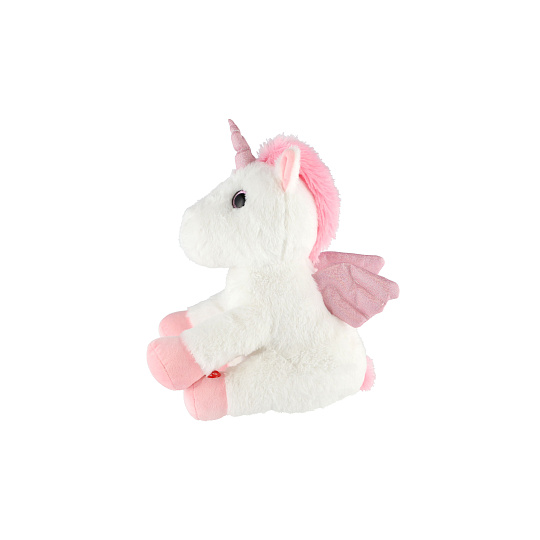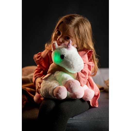 Roztomilý plyšový jednorožec s křídly je vyroben z kvalitní jemné plyše. Tento plyšový kousek je ideálním dárkem! Jednorožec s křídly pomáhá dětem snadněji usnout. Po zmáčknutí tlapky hraje klidnou relaxační hudbu. Ve tmě svítí a mění barvy. Velikost jednorožce: 38 cm Vhodné pro děti od 3 let
