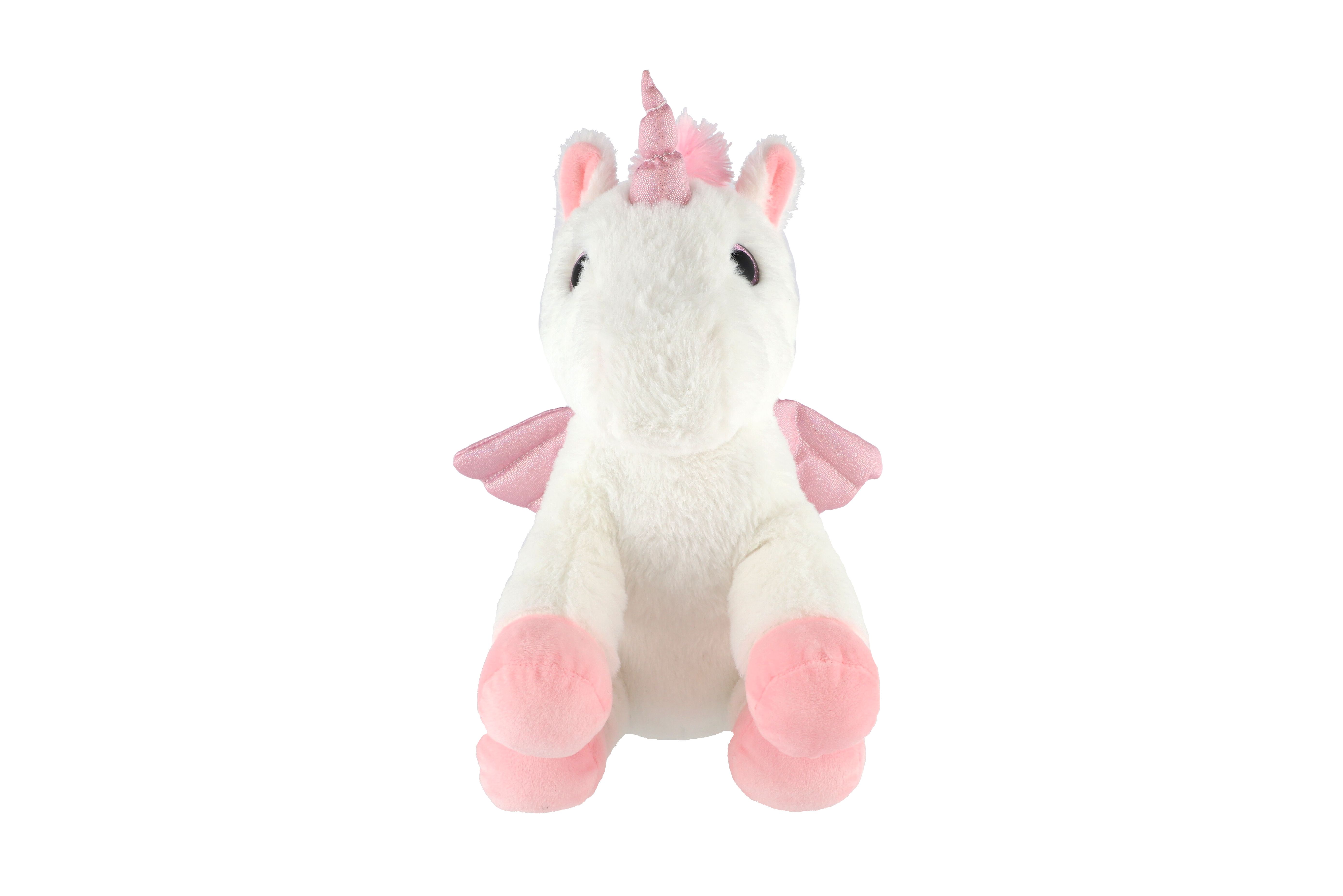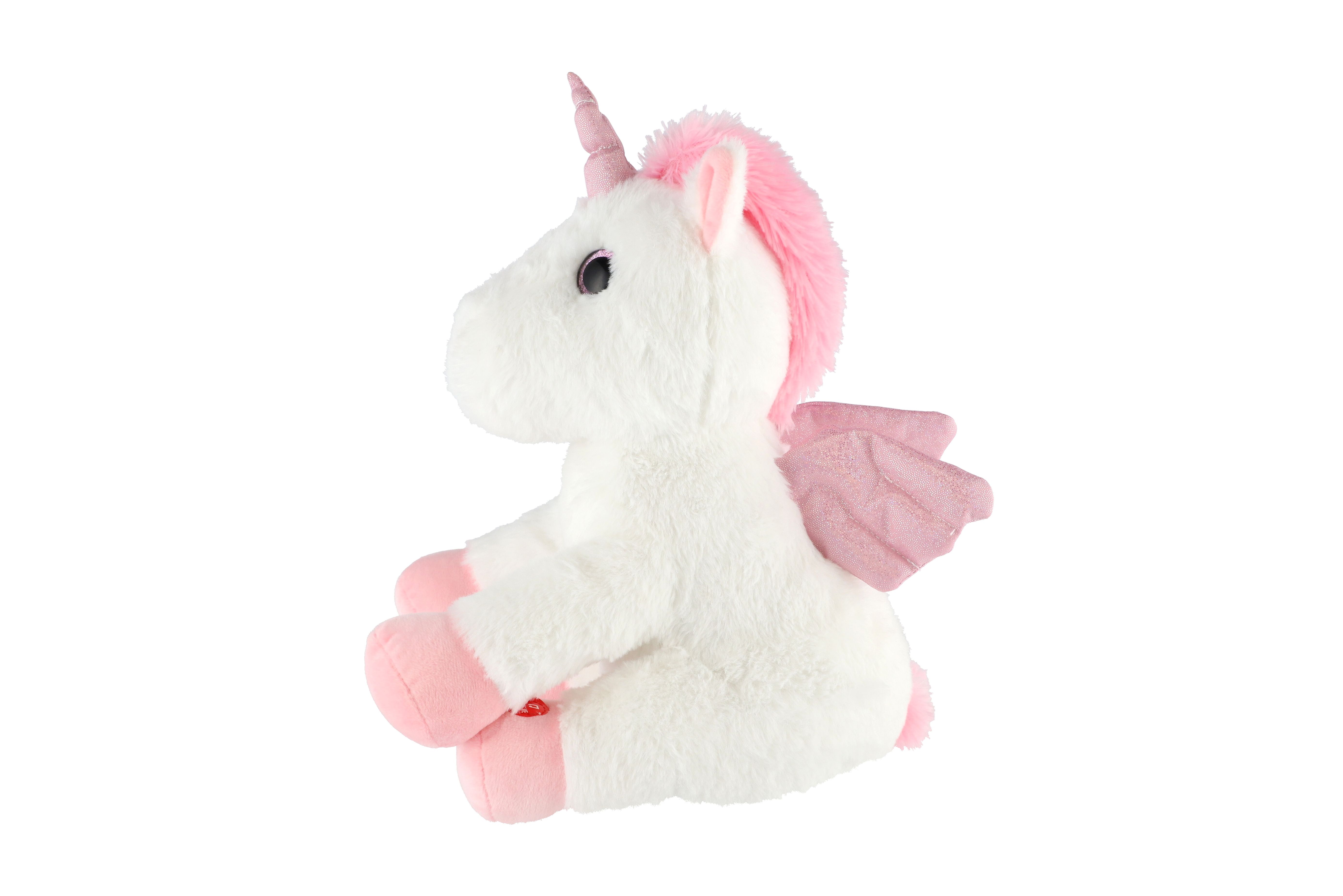 Roztomilý plyšový jednorožec s křídly je vyroben z kvalitní jemné plyše. Tento plyšový kousek je ideálním dárkem! Jednorožec s křídly pomáhá dětem snadněji usnout. Po zmáčknutí tlapky hraje klidnou relaxační hudbu. Ve tmě svítí a mění barvy. Velikost jednorožce: 38 cm Vhodné pro děti od 3 let