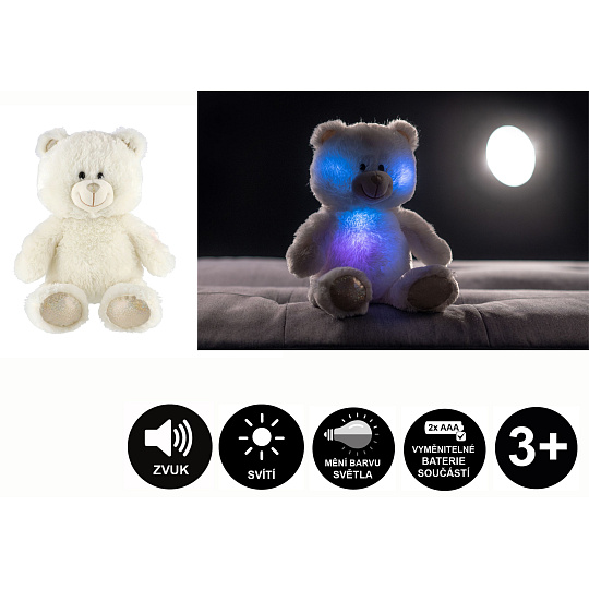 Snílek medvěd bílý plyš 40cm na baterie se světlem se zvukem v sáčku