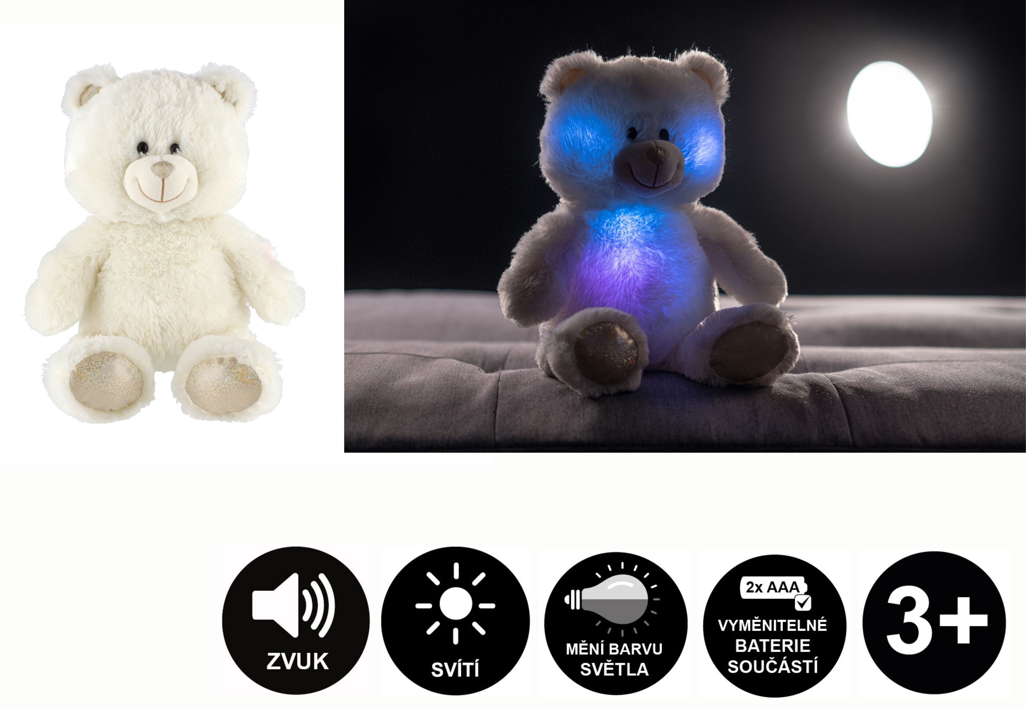 Snílek medvěd bílý plyš 40cm na baterie se světlem se zvukem v sáčku