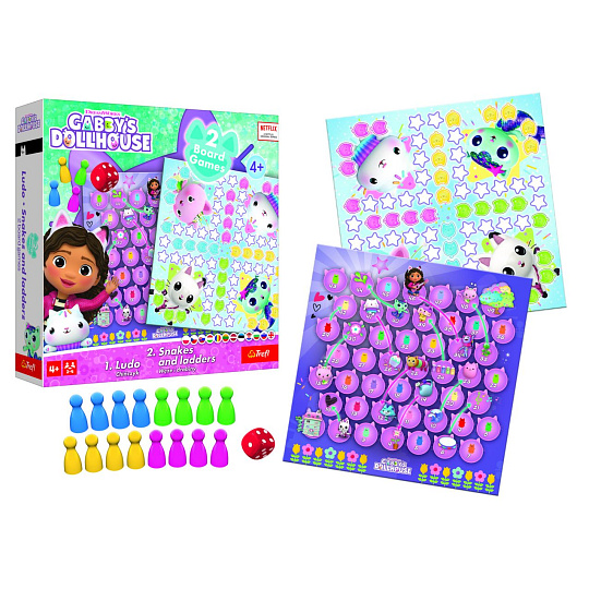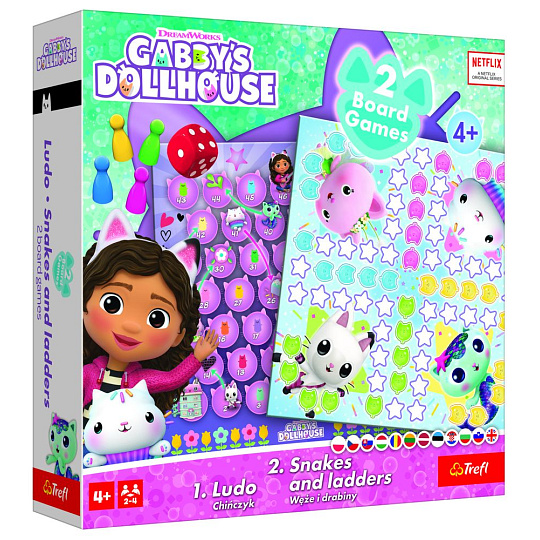 Soubor her 2v1 Člověče, nezlob se, Hadi a žebříky Gabby/Gabby´s Dollhouse v krabici 24x24x5,5cm