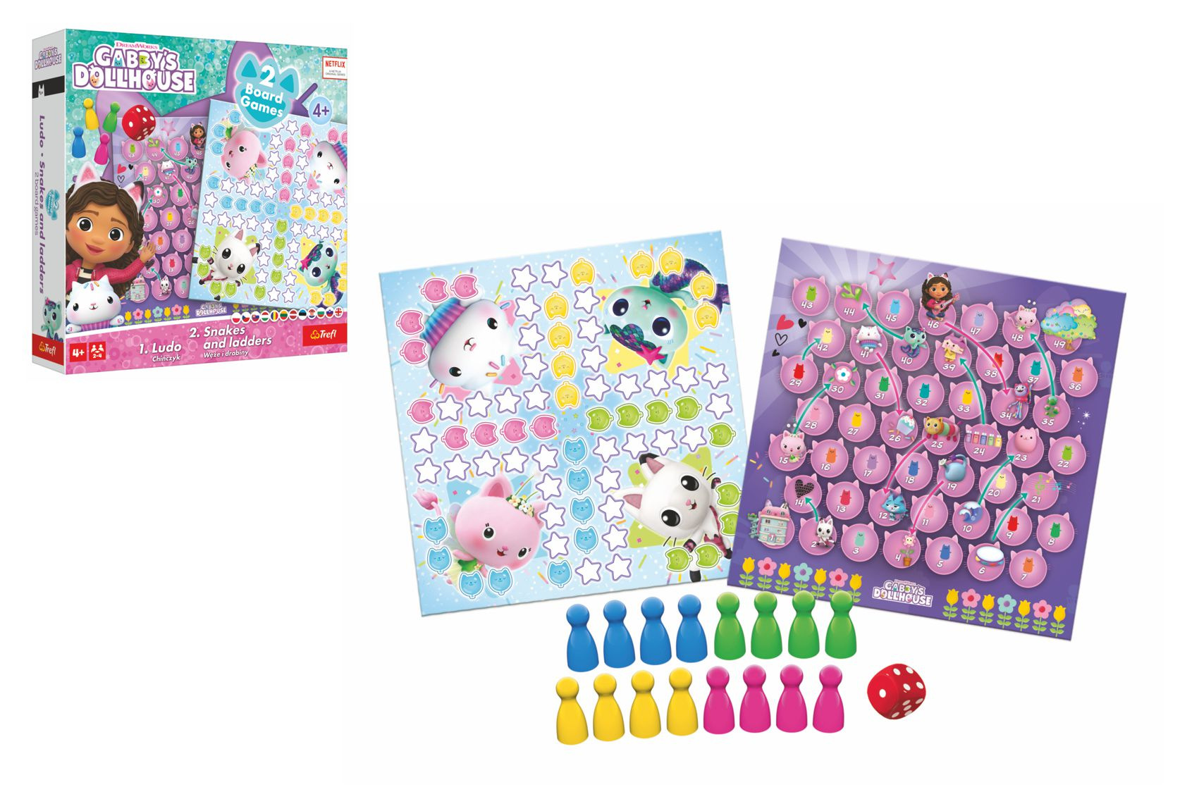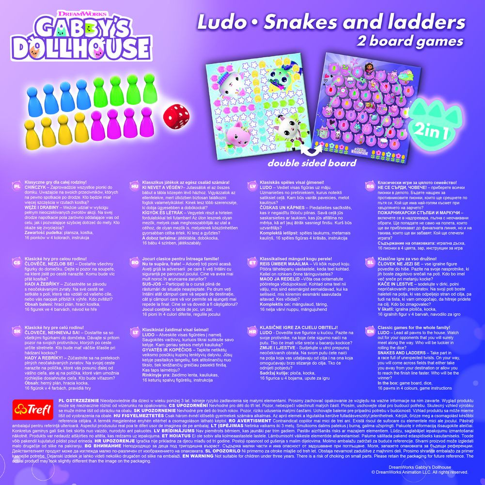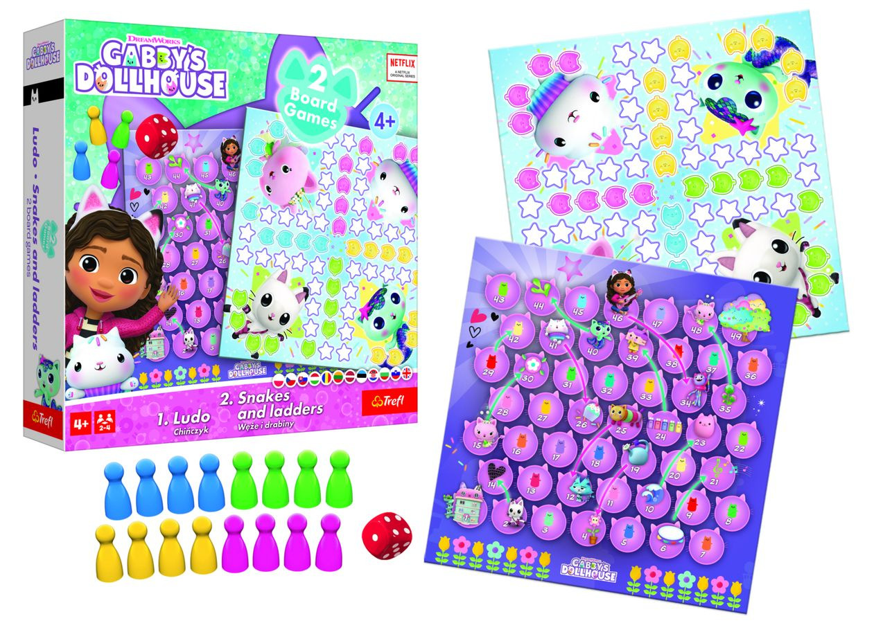 Soubor her 2v1 Člověče, nezlob se, Hadi a žebříky Gabby/Gabby´s Dollhouse v krabici 24x24x5,5cm