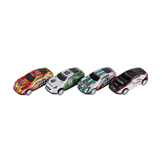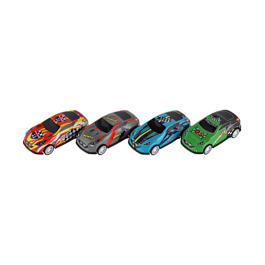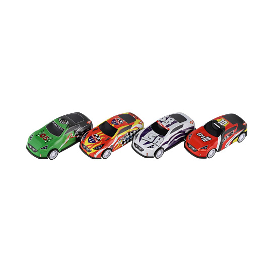 Sada čtyř závodních aut potěší každého malého milovníka rychlých kol. Barevná autíčka s moderním designem jsou ideální pro každodenní hraní doma i na cestách. Díky volnému chodu se auta snadno rozjedou a zaručí spoustu zábavy při závodění.